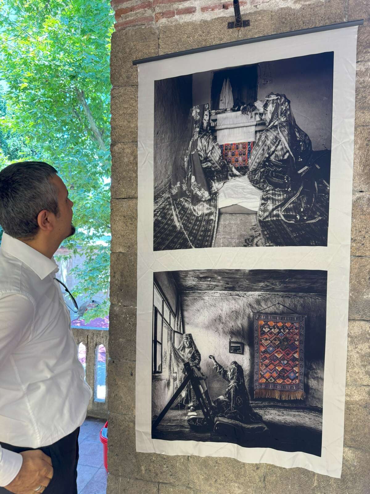Tarihi Kozahan’da açılan ipek kumaş üzerine ipeğin hikayesi, revakların küfeki taşından sütunlarında ilginç bir fotoğraf sergisi açıldı. Bursalı fotoğraf sanatçısı Fahrettin Beceren’in objektifinden ipekböceğinin tohumdan çıktığı andan, kozasını örüp, bu kozadan ip elde edilmesine, bu iplerin dokunup halı veya moda tasarımı olmasına kadar geçen süreye kadar bütün safhaları fotoğraflarla anlatılıyor. Ancak fotoğraflar ilk defa bir kağıda değil, saf ipek kumaşa basıldı. Bursa Kestel ilçesinde faaliyet gösteren ve dijital ipek baskısı konusunda dünya moda merkezleri tarafından bilinen Atınç İpek atölyelerinde basılan fotoğraflar kağıdın canlılığından daha sıcak bir his yaşatıyor. Rüzgar ile birlikte hareketlenen tarihi duvarlardaki fotoğraflar, objelerin daha canlı algılanmasını sağlıyor.