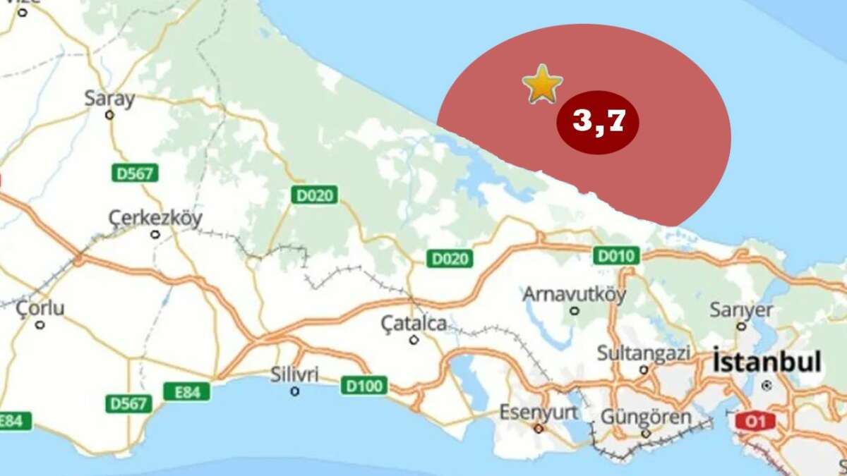 Karadeniz’de İstanbul yakınlarında saat 19.44’te bir deprem meydana geldi. Afet ve Acil Durum Yönetimi Başkanlığı (AFAD), depremin büyüklüğünü 3,7, derinliğini ise 13,57 kilometre olarak açıkladı.