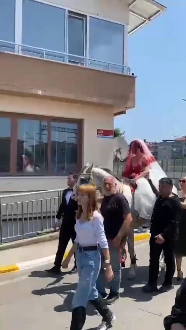 Pendik’te Batı Mahallesi Mithatpaşa Caddesi’nde gerçekleştirilen bu gelenek, davul zurna eşliğinde başladı. Damat tarafı, gelini evinden almak için müzik eşliğinde geldi. Gelin, nikahın kıyılacağı salona kadar at üzerinde gezdirildi.