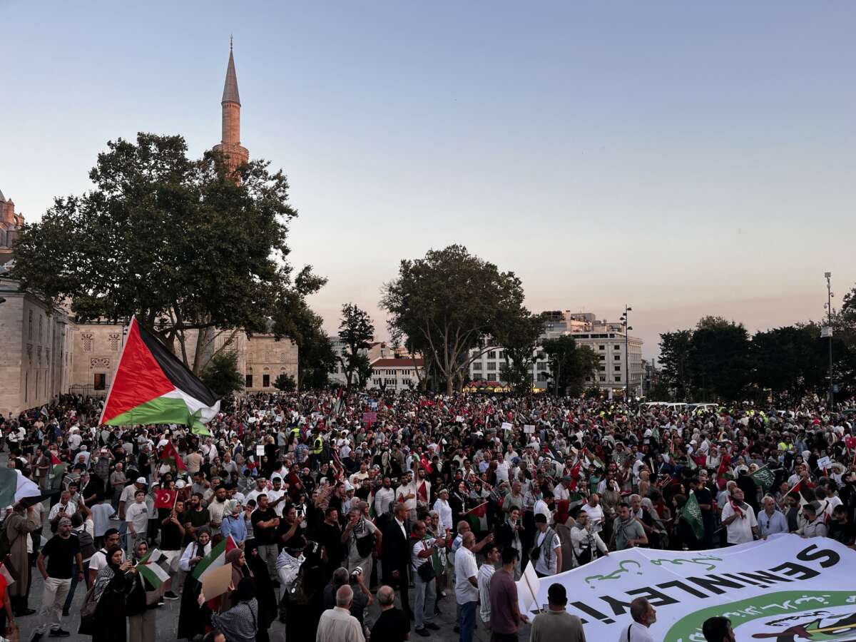 Ayasofya Camii’nde toplanan vatandaşların katıldığı programda Kur’an-ı Kerim tilaveti yapılırken Filistin için sloganlar atıldı. Programda konuşan Filistin’e Destek Platformu Başkanı Mehmet Güney, “Bu yürüyüş Gazzeli kardeşlerimize umut olsun. Bu umut mücahitlerin imanını güçlendirsin, Tel Aviv’deki kepazelere de korku olsun. 9 Ağustos bir milat olsun inşallah. İnsanlık tarihi görmediği bir zulmü gördü Gazze’de, Filistin’de. Bugüne kadar sayıları tespit edilen 62 bin şehidimiz toprak altında. Gazze’ye bunu reva gören Siyonist çeteleri asla unutmayacağız ve affetmeyeceğiz” dedi.