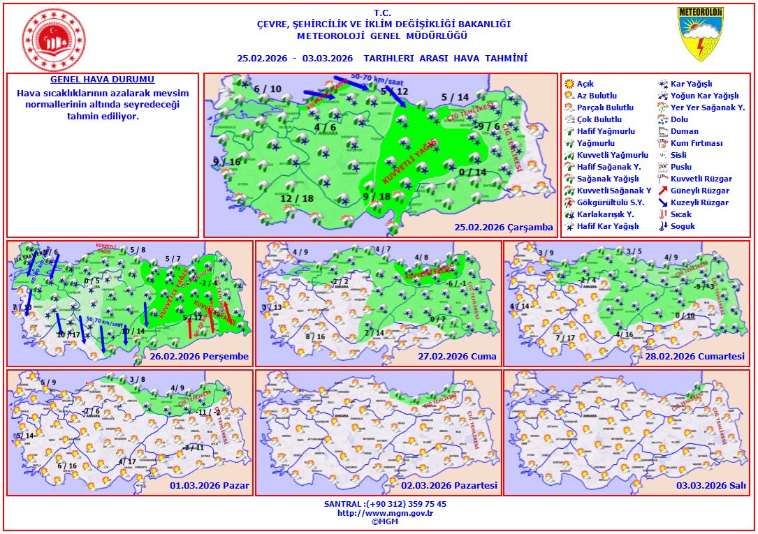 26 Şubat Perşembe: Perşembe günü Bursa’da sıcaklıklar sert düşüş yaşıyor. Bursa’nın yüksek kesimlerinde kar yağışı etkili olabilir.
