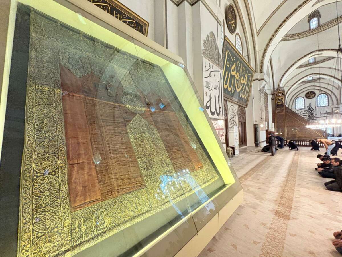 Osmanlı padişahı Yavuz Sultan Selim’in halifeliği üstlenmesinin ardından Bursa’ya getirildiği rivayet edilen Kâbe kapı örtüsü, 500 yılı aşkın süredir Bursa Ulu Camii’nde muhafaza ediliyor. 16. yüzyıla tarihlenen ve Memlük sanatının nadide örneklerinden biri olan örtü, hem dini hem de siyasi tarih açısından büyük önem taşıyor.