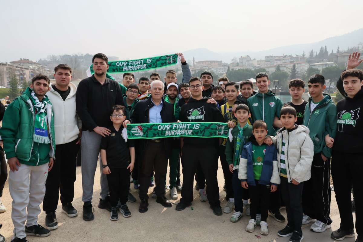 Başkan Bozbey’de Kültürpark Eski Atatürk Stadyumu’nda taraftarlarla birlikte maçın heyecanına ortak olurken, Bursasporlu taraftarlar tarafından tezahüratlarla karşılandı.