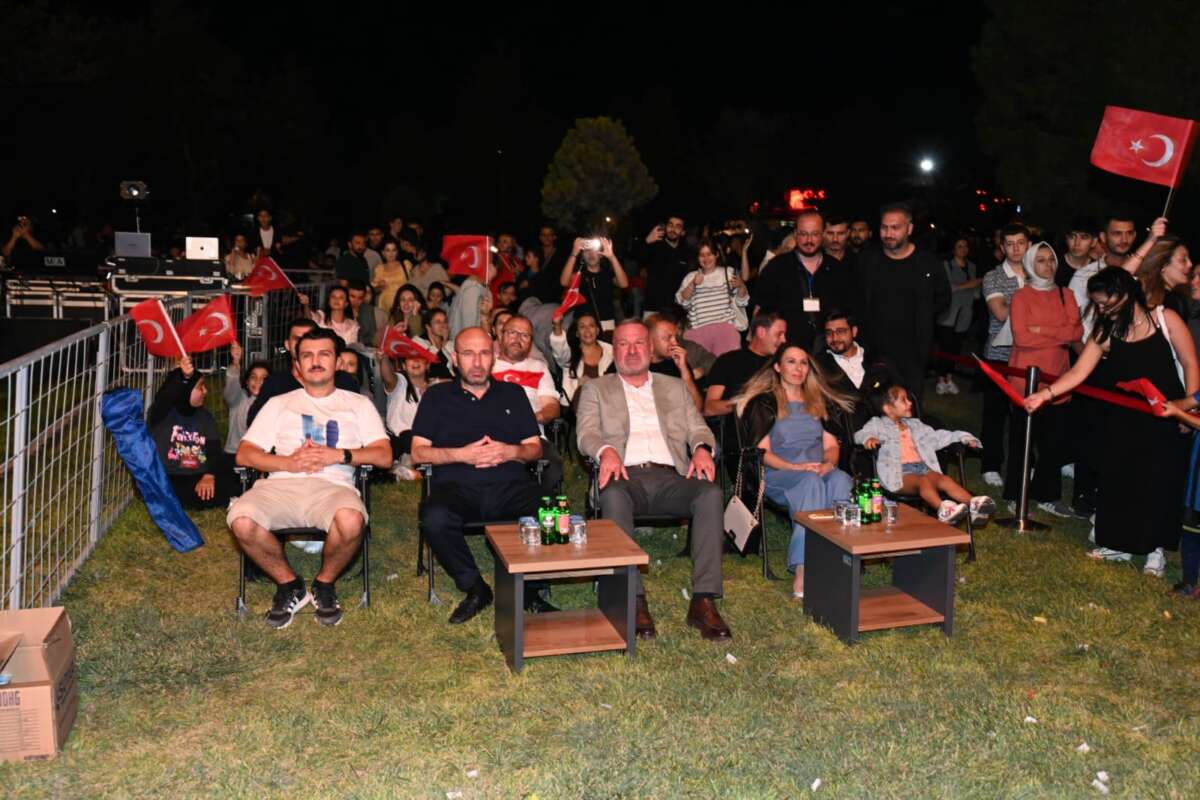 Konser alanında bayraklarla ve alkışlarla kutlamalara katılan Karacabeyliler, geceyi hep birlikte şarkılar söyleyerek tamamladı.