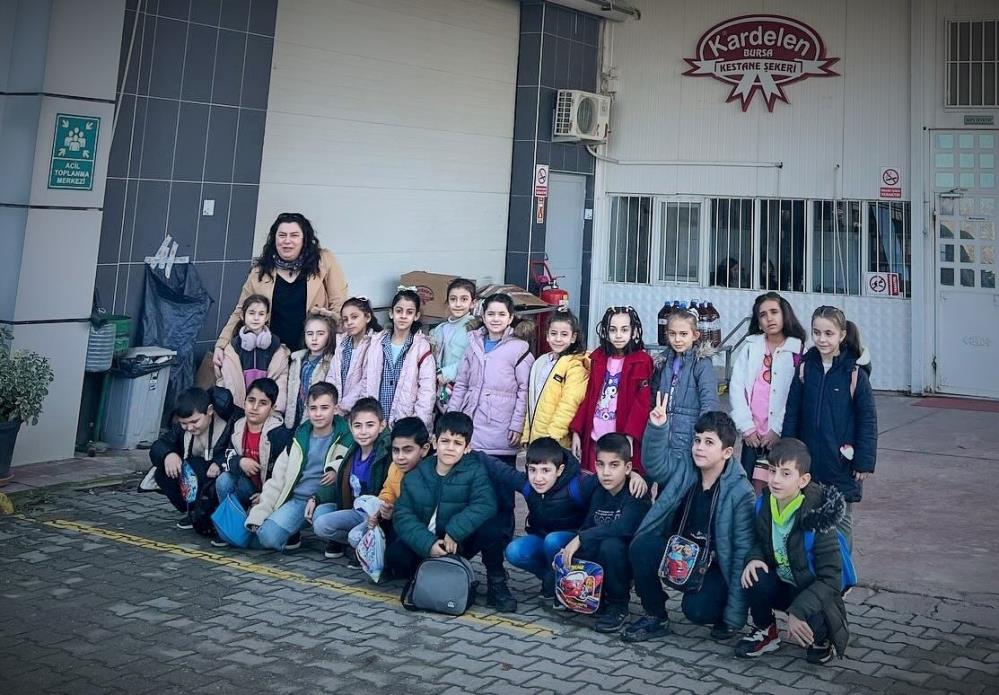 Kardelen Kestane Şekeri'nin üreticisi İlka Şekerleme, Bursa'ya özgü kestane şekerini tanıtmak ve okul dışı eğitime katkı sağlamak amacıyla 18 yıldır devam eden sosyal sorumluluk projesiyle öğrencileri tesislerinde ağırlamayı sürdürüyor.