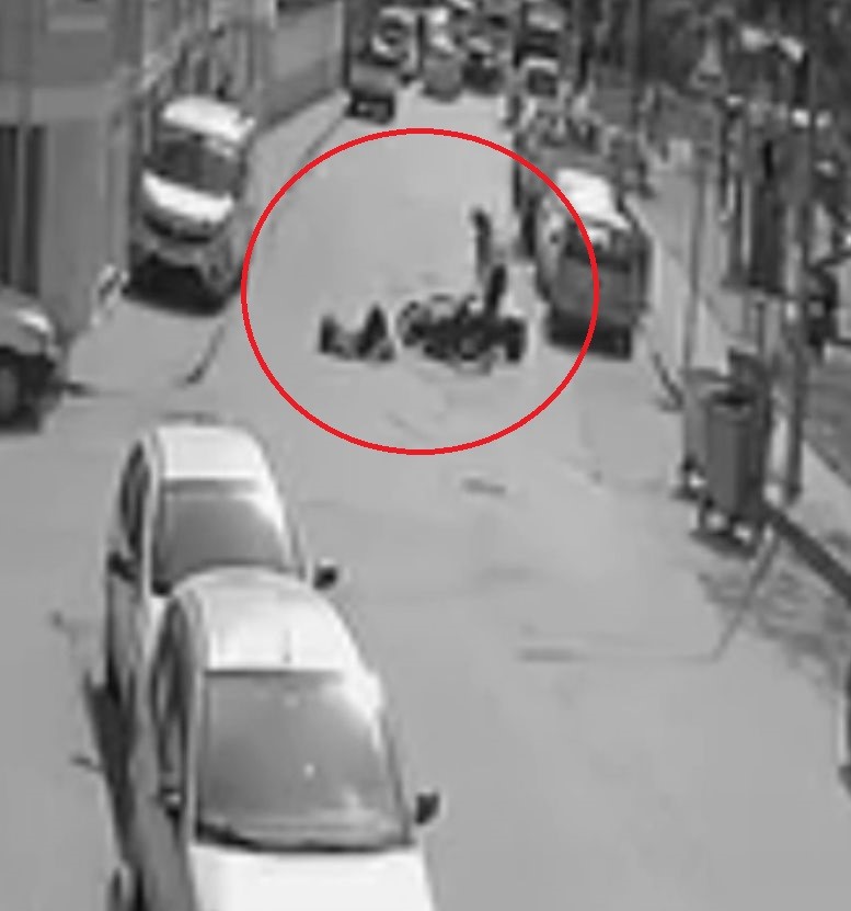 Bursa'da motosikletli kurye, cadde üzerinde yürüyen bir kadına çarptıktan sonra olay yerinden kaçtı. O anlar güvenlik kamerasına yansırken, yaralı kadının yardımına çevredekiler yetişti.