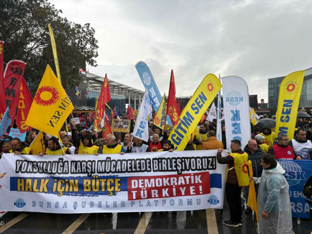 Basın açıklamasını okuyan KESK Bursa Şubeler Platformu Dönem Sözcüsü ve Tarım Orkam-Sen Bursa Şube Başkanı Tarık Efe, Türkiye’nin ekonomi politikalarını “toplumu yoksulluğa sürükleyen bir düzen” sözleriyle eleştirerek, hazırlanmakta olan 2026 bütçesinin halkın değil sermayenin çıkarlarını gözettiğini ifade etti.