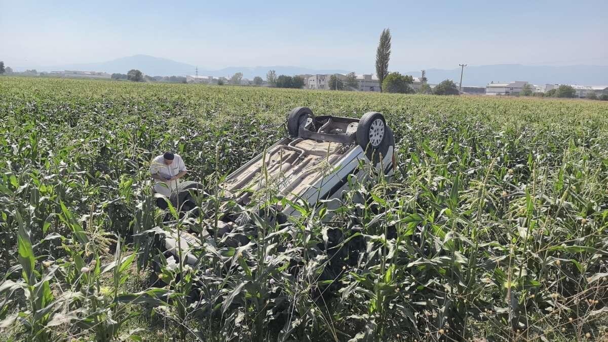 Kaza saat 12.30 sıralarında Alanyurt ile Akhisar Mahallesini bağlayan beton yolda meydana geldi. Akhisar mahallesine seyreden Servet A.(40) yönetimindeki 16 AFE 491 plakalı hafif ticari araç, virajda sürücüsünün kontrolünden çıkarak mısır tarlasına takla atarak ters durdu. İhbarla kaza yerine 112 ve polis ekipleri sevk edildi. Sürücü, isteği üzerine sağlık ekiplerince ayakta tedavi edildi.