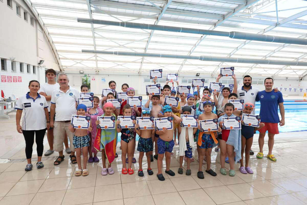 Çocukların yaz tatilinde hem spor yapma hem de eğlenme fırsatı bulduğu Yaz Spor Okulları kapsamında yüzme eğitimlerini tamamlayan minikler sertifikalarını aldı. Haftanın 4 günü olmak üzere 2 hafta eğitim verilen yüzme çalışmalarında çocuklar, Bursa Büyükşehir Belediyesi’nin Fethiye, Mihraplı, Kestel ve Gürsu Yüzme Havuzları’nda sporla buluşma imkanı buldu. Yüzme kurslarında 6-13 yaş aralığındaki çocuklar eğitim alırken, minik kulaçlar dönem sonunda sertifikalarına kavuşmanın mutluluğunu yaşadı.