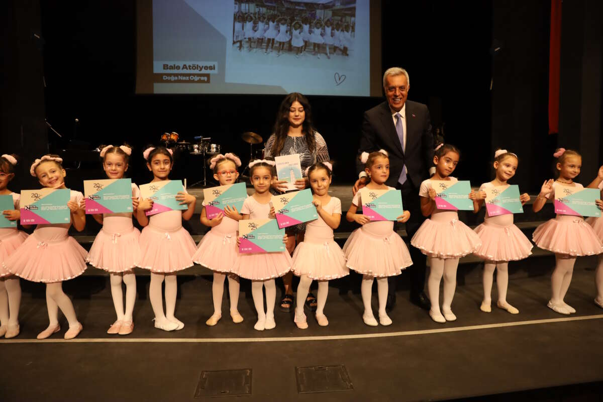 Eğitimlerin ardından Tayyare Kültür Merkezi’nde gerçekleştirilen sertifika törenine, Büyükşehir Belediyesi Genel Sekreter Yardımcısı Mehmet Yıldız, Kültür ve Sosyal İşler Dairesi Başkanı Şafak Baba Pala, Büyükşehir Belediyesi yöneticileri ve vatandaşlar katıldı. Programda, miniklerden yetişkinlere tüm kursiyerler, 8 haftalık atölye sürecinde öğrendikleri dans ve enstrüman performanslarını Bursalıların beğenisine sundu. Resim, ebru gibi görsel sanat atölyelerinde eğitim alan kursiyerlerin eserleri de ziyaretçilerden büyük ilgi gördü.