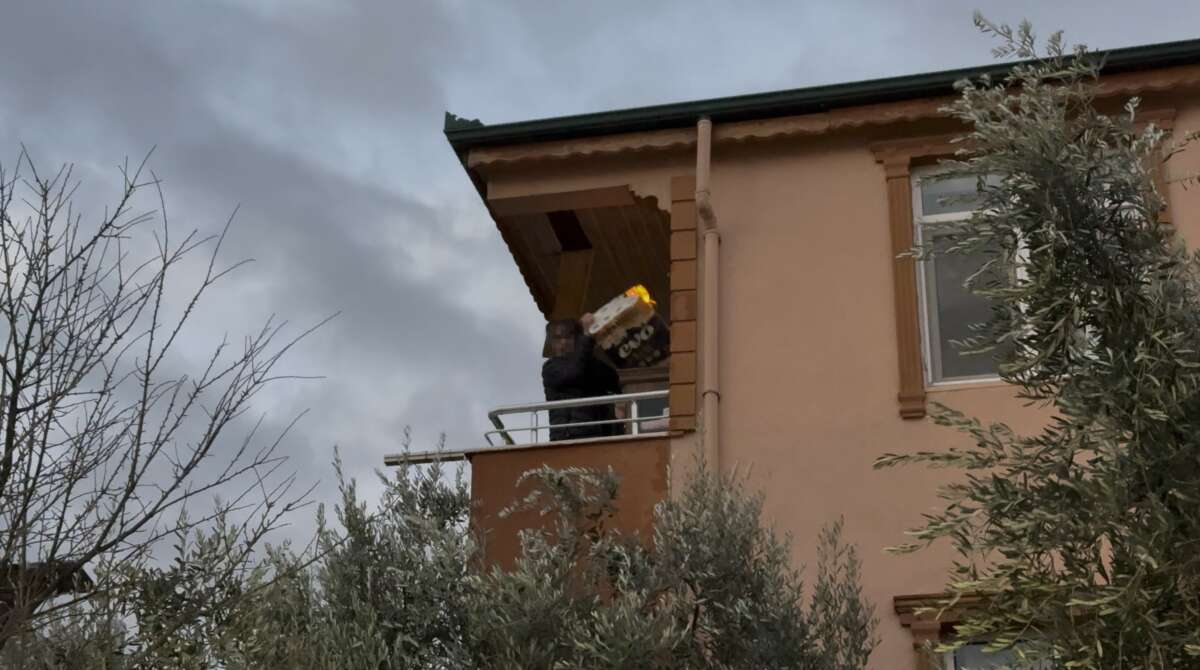 Alevleri fark eden ev sahibi, yangının büyümesini engellemek amacıyla balkona çıkarak yanan eşyaları aşağı attı. O anlarda vatandaşın ağzında sigara olduğu görülürken, yaşananlar çevrede bulunan kişiler tarafından cep telefonu kamerasıyla kaydedildi.