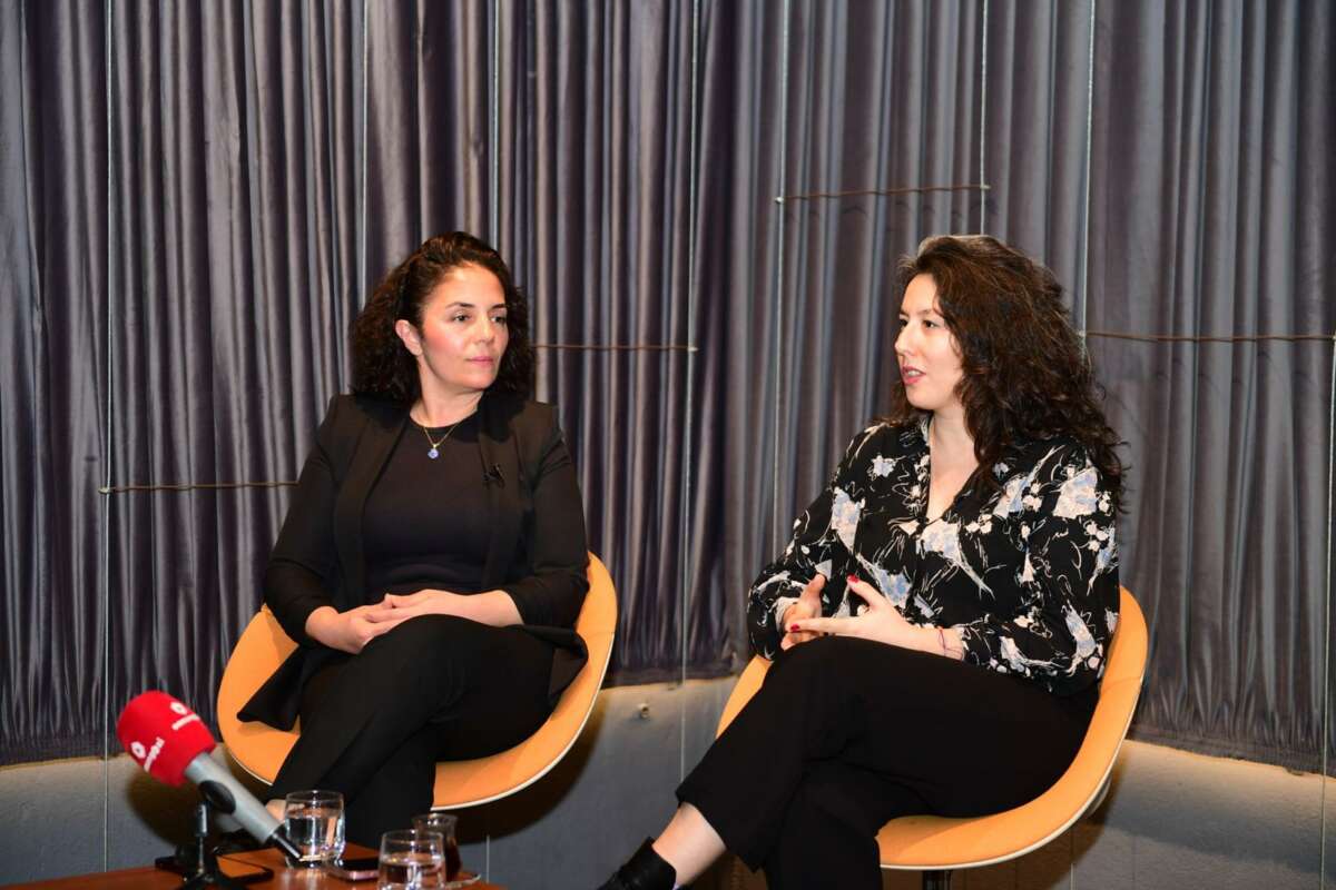 Söyleşinin ardından Osmangazi Belediyesi Basın Yayın ve Halkla İlişkiler Müdürü Süleyman Çavlı, Esra Türker ve Hatice Nur Derya’ya Atatürk plaketi takdiminde bulundu.