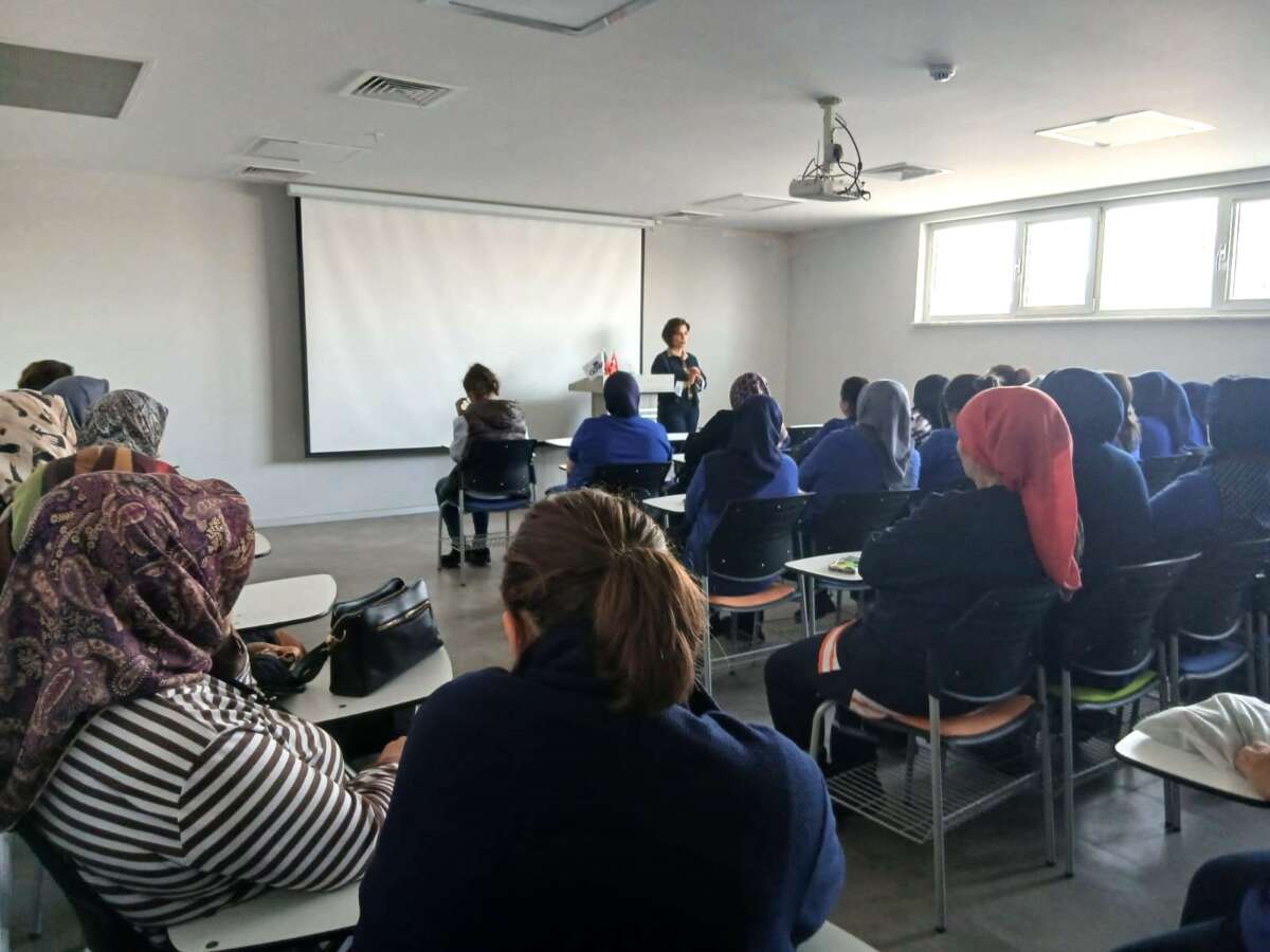Seminerde Dr. Kuzukıran, kadın sağlığında erken tanının önemine dikkat çekerek, özellikle meme kanseri ve rahim ağzı kanseri konusunda güncel veriler ışığında bilinçlendirici bilgiler paylaştı.