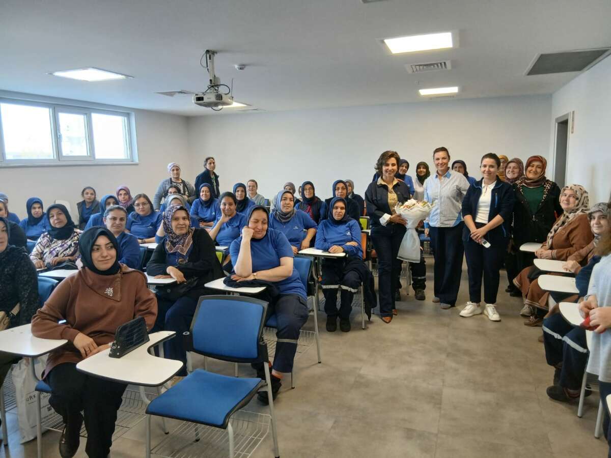 Kadın Hastalıkları ve Doğum Uzmanı Op. Dr. Nuray Kuzukıran etkinliğin sonunda Hasanağa OSB’de faaliyet gösteren Almanya merkezli Gotec Group’un Bursa fabrikasında görev yapan kadın çalışanların sorularını cevaplandırdı.
