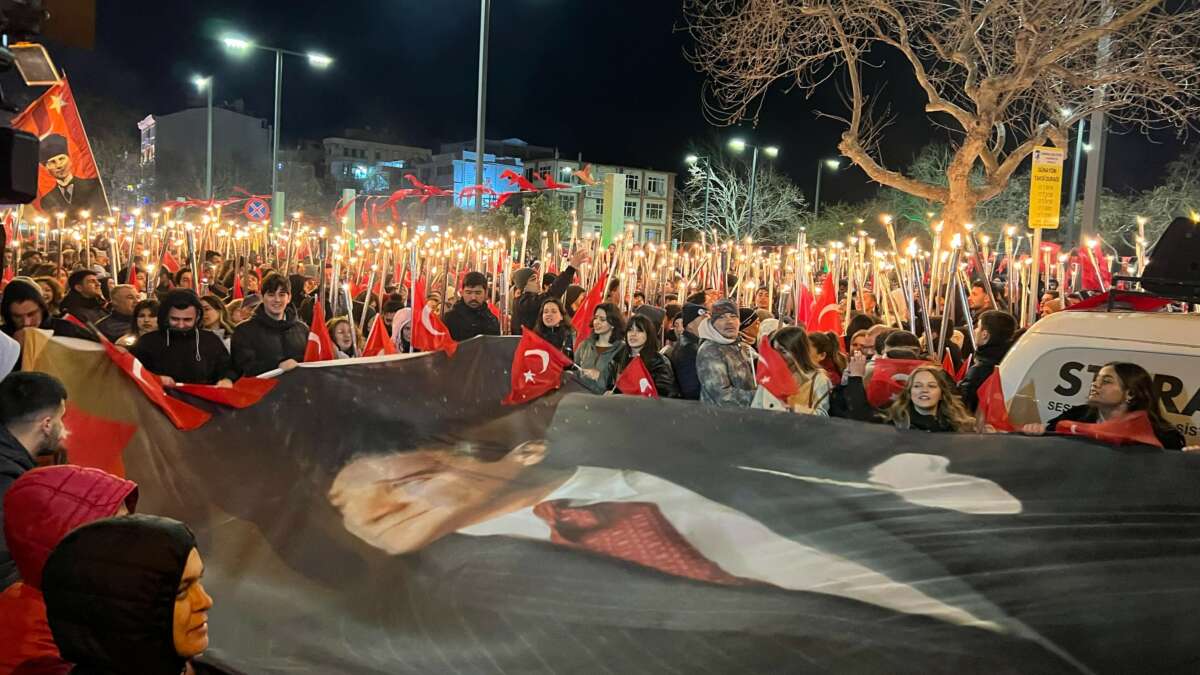 Akşam saat 20.45’te ise Çanakkale Valiliği koordinasyonunda fener alayı düzenlendi. Binlerce kişi, Çanakkale sokaklarında ellerinde meşalelerle “Mustafa Kemal’in askerleriyiz” sloganı atıp, İzmir Marşı ve 10’uncu Yıl Marşı’nı söyleyerek yürüdü. Yürüyüşe, Çanakkale Valisi Ömer Toraman, Çanakkale Boğaz ve Garnizon Komutanı Tuğamiral Mustafa Biçen, Çanakkale Savaşları Gelibolu Tarihi Alan Başkanı İsmail Kaşdemir, daire müdürleri ve vatandaşlar katıldı.