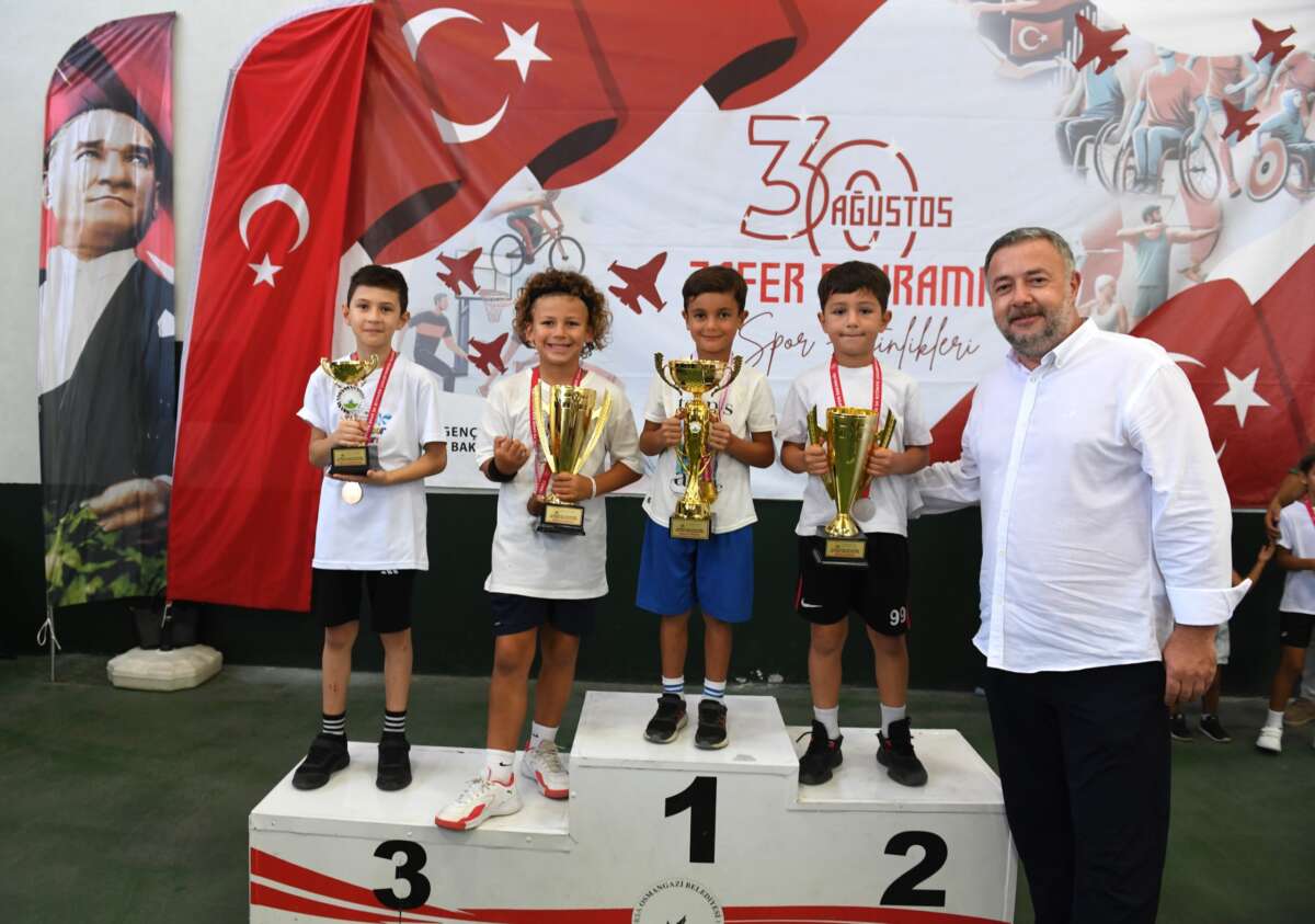30 Ağustos Zafer Bayramı’na özel Ertuğrul Sağlam Spor Tesisleri’nde 8 yaş gurubundaki çocuklar için düzenlenen turnuvaya katılan sporcular, 3 gün boyunca dereceye girebilmek için birbirleriyle kıyasıya mücadele etti. 52 erkek ve 34 kız olmak üzere toplamda 86 sporcunun katıldığı 30 Ağustos Zafer Bayramı Tenis Turnuvası erkekler kırmızı ve beyaz grup, kızlar kırmızı ve beyaz grup kategorilerinde düzenlendi. Her grupta dereceye giren birinci, ikinci, üçüncü ve dördüncülerin kupa ve madalyaları Osmangazi Belediye Başkan Yardımcısı Mutlu Esendemir, Osmangazi Belediyespor Başkanı Fatih Karayılan, Tenis Federasyonu Bursa İl Temsilcisi Aslıhan Köse ve Osmangazi Belediye Meclis Üyesi Bakır Taşer, tarafından verildi. Turnuvada 3 gün boyunca kıyasıya mücadele vererek büyük başarı elde eden sporcular düzenlenen ödül töreninde büyük heyecan ve mutluluk yaşadı.