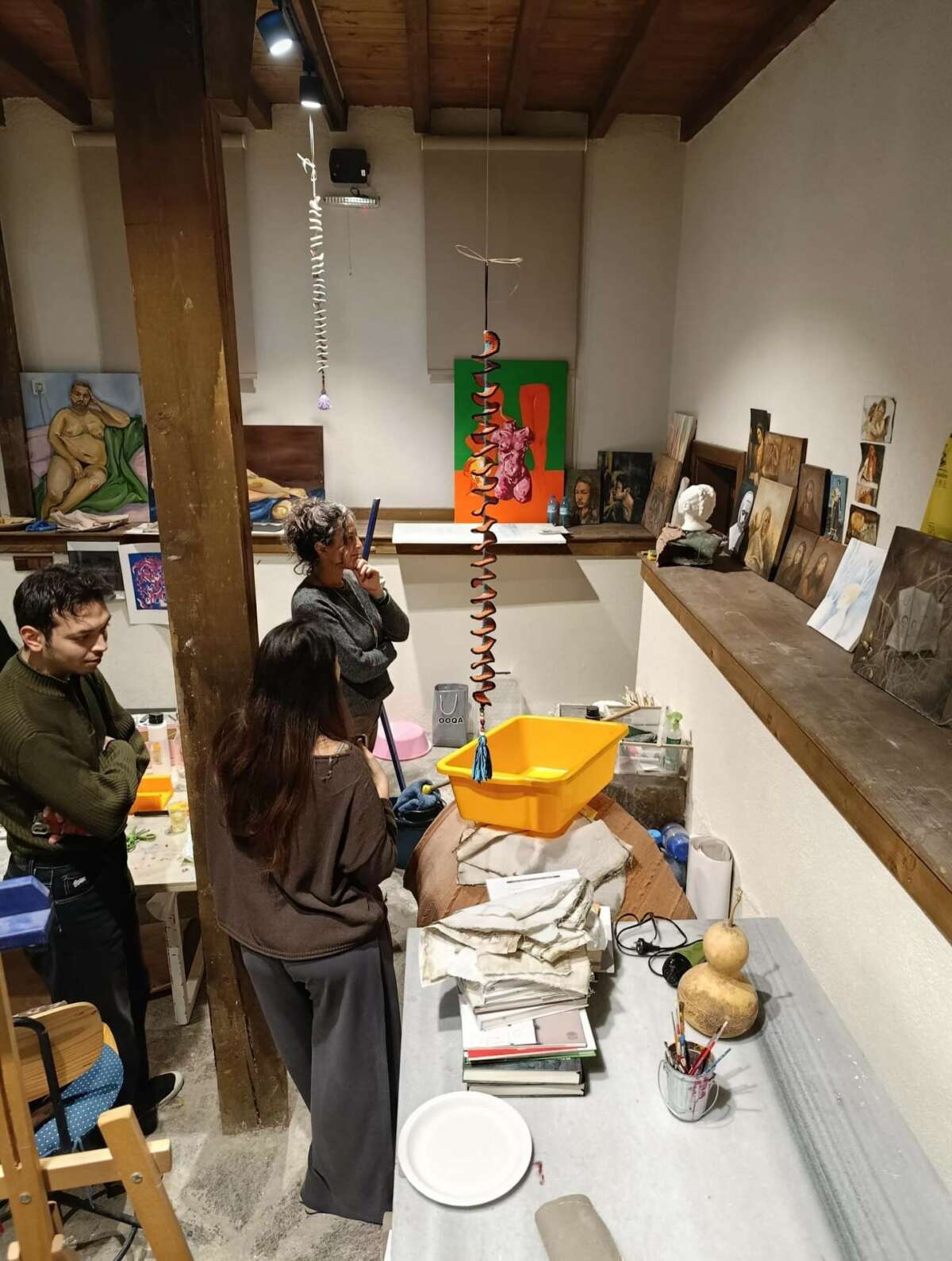 Buluşmada; sanatçıların malzeme kullanımı, fikir geliştirme süreçleri ve sanat dünyasındaki güncel dinamikler üzerine fikir alışverişinde bulunuldu.