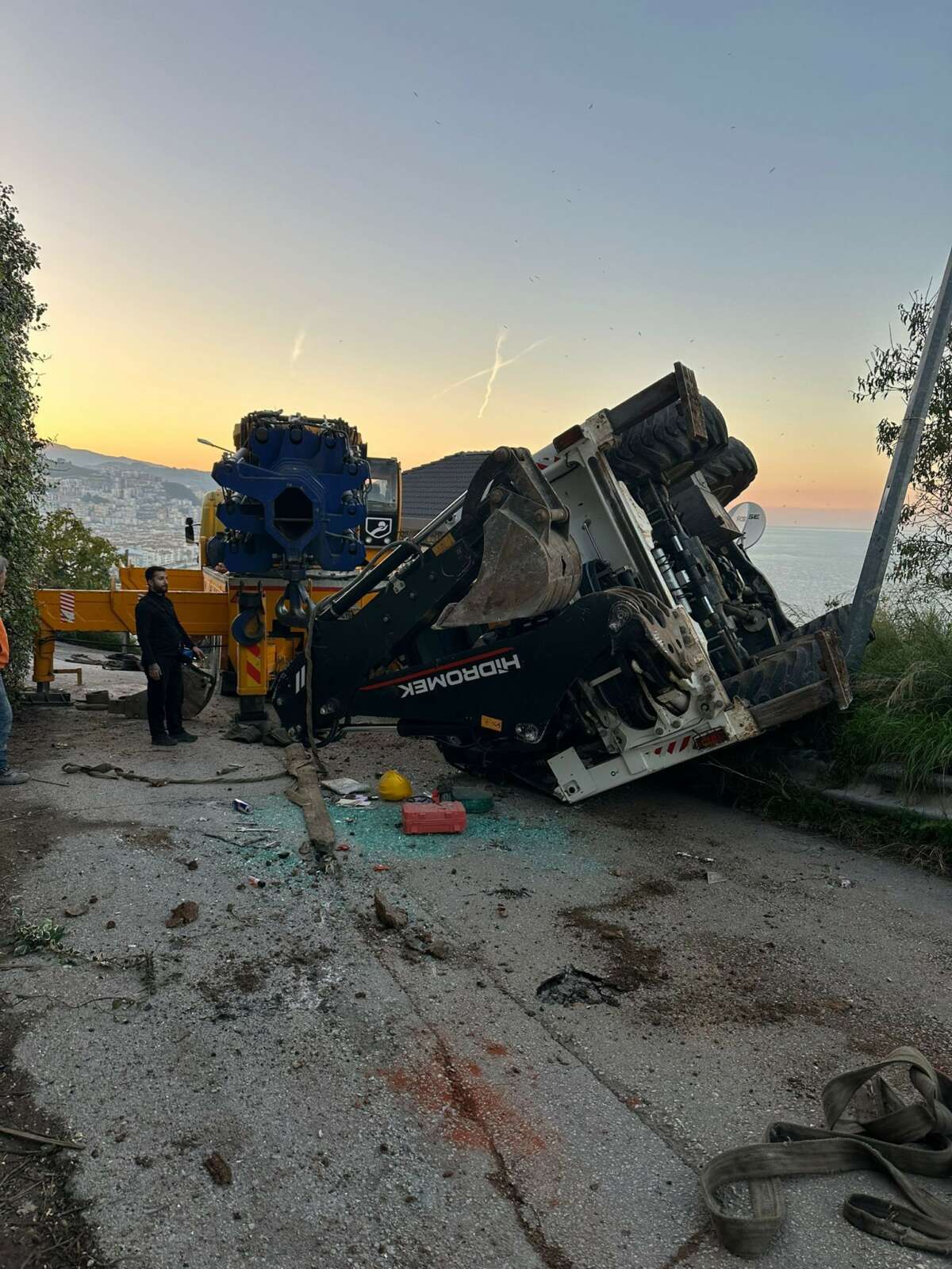 Olay, Güzelyalı Burgaz Mahallesi Ferah Sokak üzerinde bulunan bir evde yürütülen çalışmalar sırasında meydana geldi. Vinçle kaldırılan kepçe, henüz belirlenemeyen bir nedenle devrilerek yere düştü. O anlar çevrede bulunan vatandaşlar tarafından cep telefonu kamerasıyla kaydedildi.