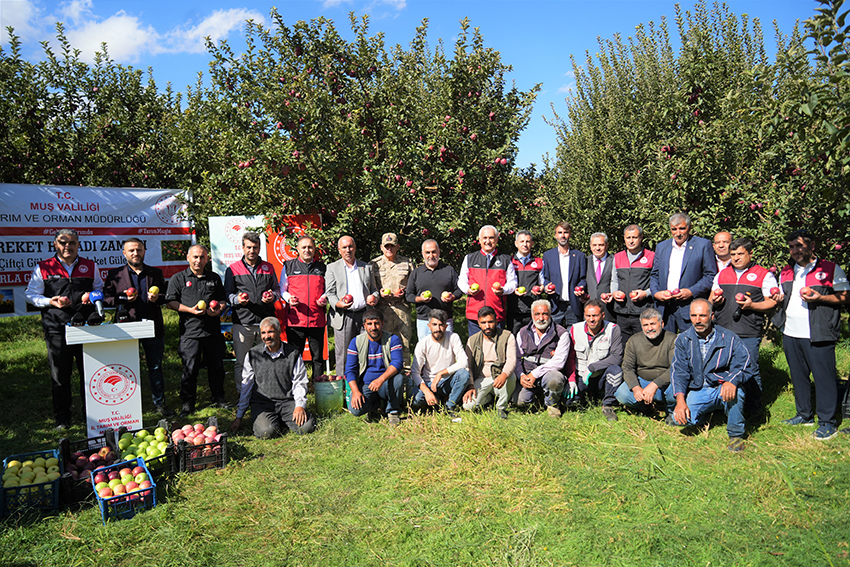 Muş İl Tarım ve Orman Müdürü Necattin Gönç ise, kentin tarımsal faaliyet açısından önemli merkezlerden biri konumunda yer aldığını vurguladı. Tarım alanında önemli bir potansiyele sahip olduklarını belirten Gönç, verimli toprakları, ovaları, bitki florası ve su kaynaklarıyla Muş’un üretime oldukça uygun bir şehir olduğunu söyleyerek, “Toplamda 357 bin hektarlık tarıma elverişli bir alan bulunmakta. Yürütülen tarımsal faaliyetlerden biri de meyvecilik faaliyeti. Meyvecilik anlamında ürün desenlerimizi, üzüm, elma, armut, ceviz ve az da olsa kirazdan oluşmakta. Elma ve armut da ilimizde önemli bir yer tutuyor. 4 bin 500 dönümlük bir alanda elma hasadı yapılıyor. İlimizde meyvecilik faaliyetinin geliştirilmesi, yaygınlaştırılmasına yönelik çalışmalarımızı yürütüyoruz. Yaklaşık 2 bin ton elma hasat etmeyi planlıyoruz. Bu yıl elma hasadından yaklaşık 100 milyon gelir beklemekteyiz” diye konuştu.