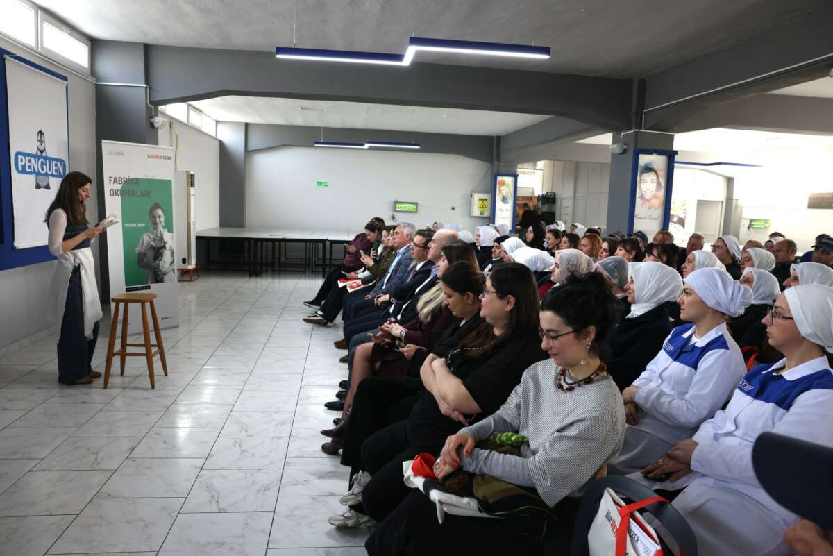 Nezaket Erden, ardından “Fabrika Okumaları” kapsamında Penguen Gıda Sanayi çalışanları ile buluştu. Burada da Sennur Sezer’in şiirlerini okuyan Erden çalışanlarla sohbet etti. Etkinlik bitiminde Nilüfer Belediye Başkan Yardımcısı Okan Şahin, Nezaket Erden’e teşekkür ederek, hediye takdim etti.