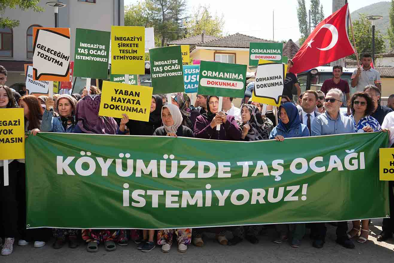Nilüfer ilçesinin İnegazi, Atlas, Üçpınar, Kadriye, Çalı, Yaylacık ve Tahtalı sakinleri, İnegazi Mahallesinde yapılması hedeflenen taş ocağını protesto etti. Eyleme mahalle sakinlerinin yanı sıra Nilüfer Belediyesi Başkanvekili Salih Güleç, Nilüfer Belediye Başkan Yardımcıları Emre Karagöz ve Okan Şahin, Bursa Kent Konseyi Başkanı Ertuğrul Aksoy, Nilüfer Kent Konseyi Başkanı Mustafa Berkay Aydın, Bursa Barosu Başkanı Metin Öztosun ve DOĞADER Başkanı Murat Demir katıldı. Ellerine pankartları alan vatandaşlar İnegazi Mahalle meydanına toplanarak tepki gösterdi. Vatandaşlar, taş ocağı faaliyetleri ile oluşacak tozun tarım ürünlerinin verimsizliğine yol açacağını, mera alanlarının yok olmasının bölgenin geçim kaynağı olan hayvancılığı bitireceğini ifade ettiler. Yerleşim alanına 400 metre uzaklıkta yapılmak istenilen taş ocağının 98 futbol büyüklüğünde olacağı kaydedildi. İddiaya göre, yapılacak taş ocağının Kayapa Gölet’i ve yapılacak Yaylacık Barajı’na yakın olması sebebiyle içme suyunu da tehdit edeceği ifade edildi.