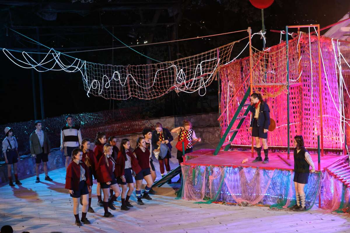 Ocak ayından bu yana süren yoğun eğitim sürecinin ardından sahneye çıkan genç oyuncular, uçak kazası sonucu ıssız bir adaya düşen çocukların uygarlıktan uzak kaldıkça içlerindeki ilkel dürtülerle yüzleşmelerini konu alan oyunu etkileyici bir performansla sundu.
