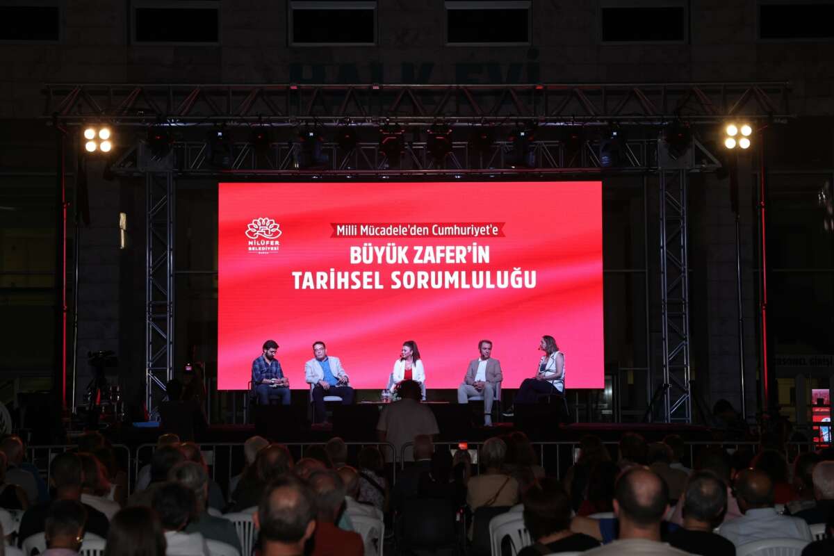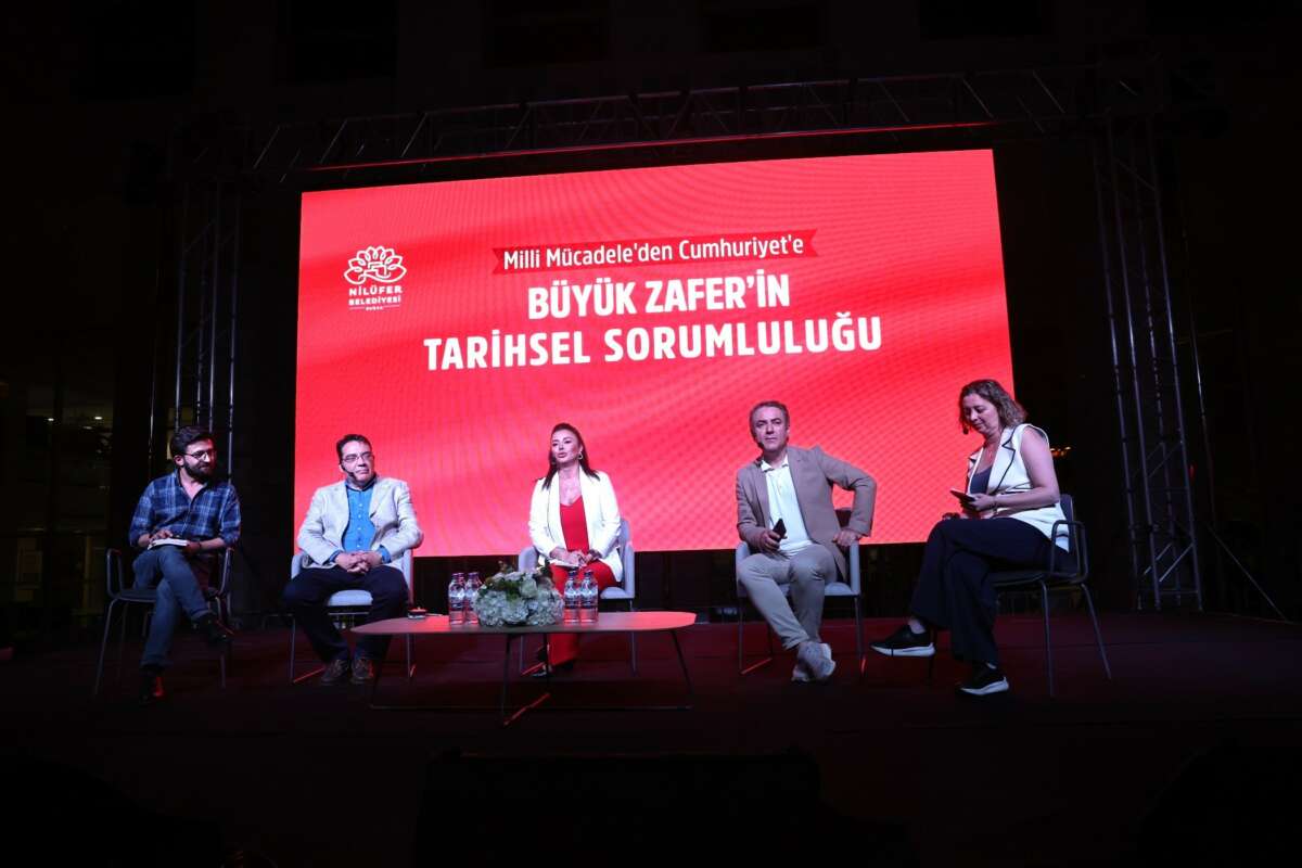 Nilüfer Belediyesi, 30 Ağustos Zafer Bayramı kutlamaları kapsamında “Milli Mücadele’den Cumhuriyet’e: Büyük Zafer’in Tarihsel Sorumluluğu” başlıklı söyleşi düzenledi. Nilüfer Belediyesi Halk Evi önünde gerçekleştirilen söyleşide tarihçi yazar Sinan Meydan, CHP Genel Başkan Yardımcısı Yankı Bağcıoğlu, gazeteci Yıldız Yazıcıoğlu, gazeteci yazar Ersin Eroğlu ve moderatör Elif Doğan Şentürk konuşmacılar arasında yer aldı. Nilüfer Belediye Başkanı Şadi Özdemir ve eşi Nuray Özdemir’in yanı sıra Bursa Büyükşehir Belediye Başkanı Mustafa Bozbey, CHP Bursa İl Başkanı Nihat Yeşiltaş ve Nilüferliler de söyleşiyi izledi.