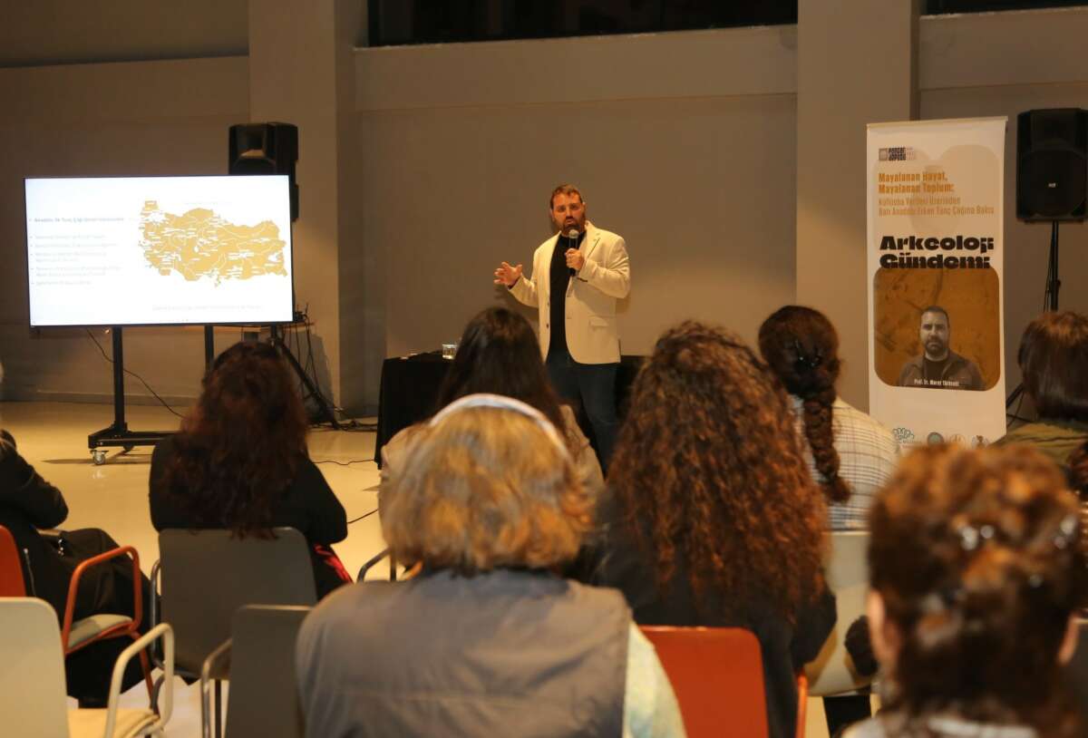 Nilüfer Belediyesi, Bursa Uludağ Üniversitesi Arkeoloji Bölümü ve Arkeologlar Derneği Bursa Şubesi iş birliğiyle düzenlenen “Arkeoloji Gündemi” söyleşi serisi Pancar Deposu’nda başladı. Programın ilk konuğu Bilecik Şeyh Edebali Üniversitesi Arkeoloji Bölümü Öğretim Üyesi Prof. Dr. Murat Türkteki, “Mayalanan Hayat, Mayalanan Toplum: Küllüoba Verileri Üzerinden Batı Anadolu Erken Tunç Çağı’na Bakış” başlıklı sunum gerçekleştirdi.