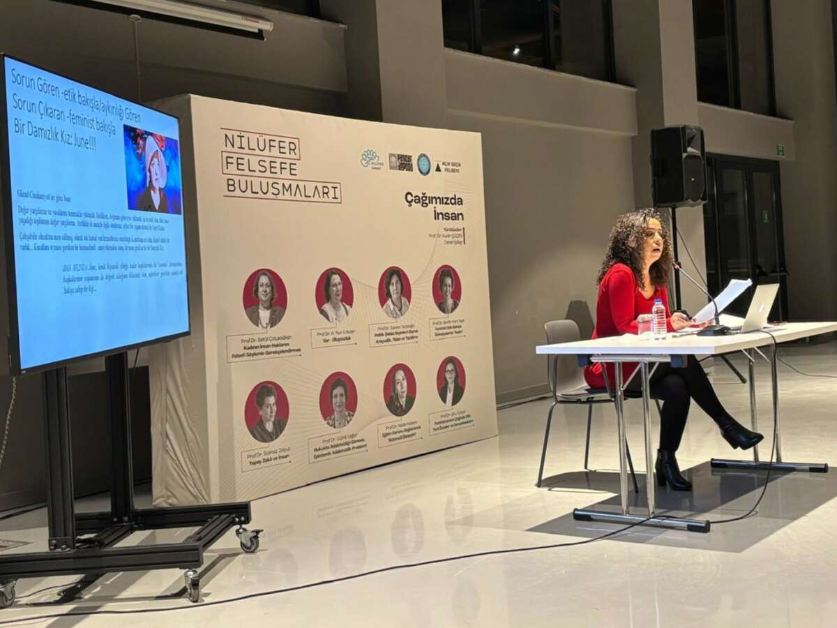 Nilüfer Belediyesi’nin düzenlediği “Nilüfer Felsefe Buluşmaları”na Prof. Dr. Berfin Kart Tepe konuk oldu. Pancar Deposu’nda gerçekleştirilen Ocak ayı söyleşisinde, “Feminist Etik Bakışla Distopyalarda Kadın” başlığı ele alındı.
