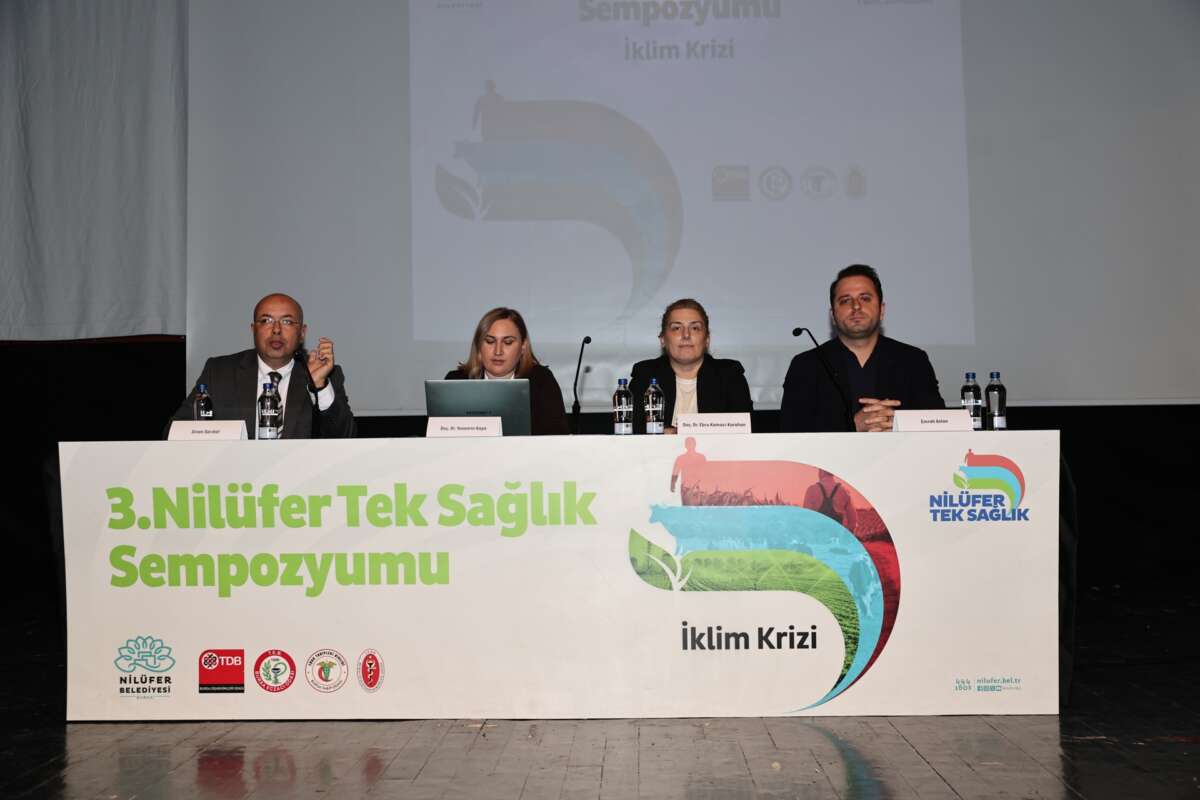 Nilüfer Belediyesi ve Tek Sağlık Platformu iş birliğiyle bu yıl üçüncüsü düzenlenen Nilüfer Tek Sağlık Sempozyumu, 3 Kasım Dünya Tek Sağlık Günü’nde Nâzım Hikmet Kültürevi’nde gerçekleştirildi. Bursa’daki sağlık meslek odalarının da desteklediği sempozyumda, iklim krizinin insan, hayvan ve çevre sağlığı üzerindeki etkileri masaya yatırıldı.