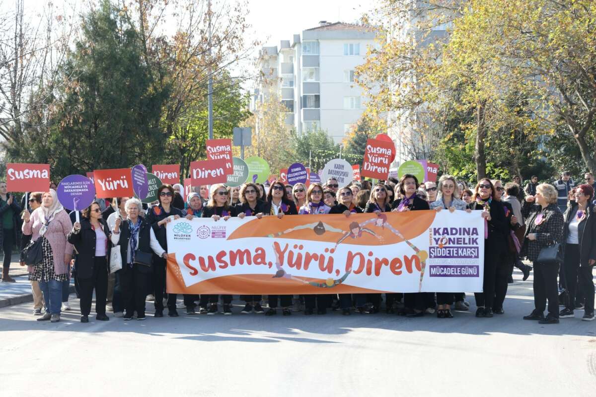 Nilüfer Belediyesi ve Nilüfer Kent Konseyi, 25 Kasım Kadına Yönelik Şiddete Karşı Uluslararası Mücadele Günü’nde farkındalık oluşturmak amacıyla yürüyüş ve söyleşi düzenledi. “Susma, yürü, diren” sloganıyla gerçekleştirilen etkinlikler, kadına karşı şiddete dikkat çekmek için Nilüfer’in farklı noktalarında bir araya gelen kadınların güçlü mesajlarına sahne oldu. Nilüfer Kent Konseyi önünden başlayan yürüyüş, Nilüfer Belediyesi Halk Evi önüne kadar sürdü. Yürüyüşe Nilüfer Belediye Başkan Yardımcıları Serpil Altun, Bukle Erman, Zerrin Güleş ve Şirin Arıbaş, Nilüfer Kent Konseyi Genel Sekreteri Doç. Dr. Elifhan Köse Çal, Nilüfer Kent Konseyi Kadın Meclisi Başkanı Tülin Demir ve Nilüfer Belediye Başkanı Şadi Özdemir’in eşi Nuray Özdemir katıldı. Nilüfer’deki kadın derneklerinin temsilcileri ve çok sayıda kadın da yürüyüşte yer aldı. Kadınlar taşıdıkları pankartlar ve attıkları sloganlarla kadına karşı şiddete ses yükseltti. Kadınların yürüyüşüne çevredeki vatandaşlar da alkışlarla destek oldu.