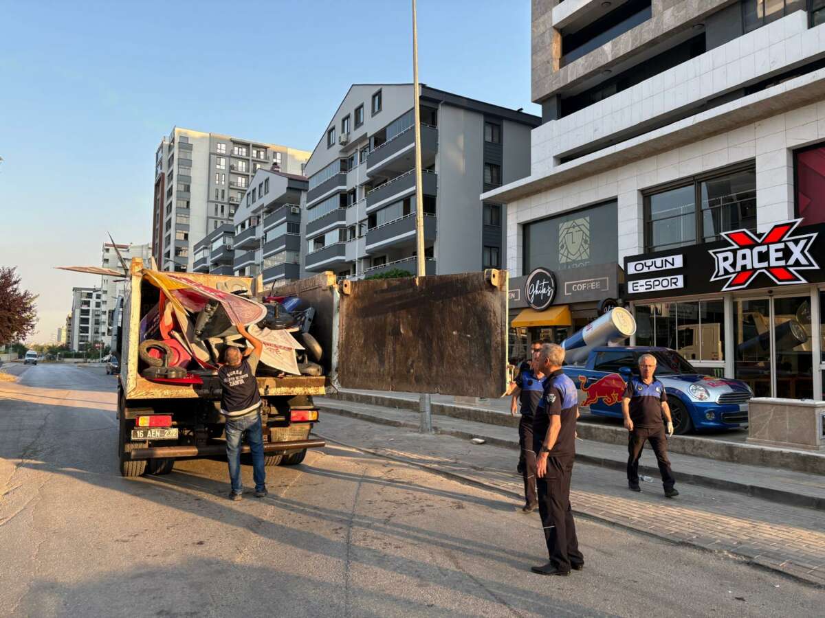 Nilüfer Belediyesi Zabıta ekipleri, kent estetiğini bozan, halk sağlığını tehdit eden ve çevre kirliliği oluşturan unsurlara karşı mücadelesini sürdürüyor. Bu kapsamda sabahın erken saatlerinde 29 Ekim, Ataevler, 23 Nisan ve Altınşehir mahallelerinde cadde ve kaldırımları işgal eden, gelişi güzel yerleştirilmiş dubalar ile çevreye atılmış ve görsel kirlilik oluşturan materyaller tek tek toplandı. Vatandaşların geçişini zorlaştıran ve kentin estetik görünümünü olumsuz etkileyen bu unsurlar, zabıta ekipleri tarafından kaldırılarak, araçlara yüklendi. Yasal prosedürlerin tamamlanmasının ardından malzemeler, Görükle şantiyesine taşındı.