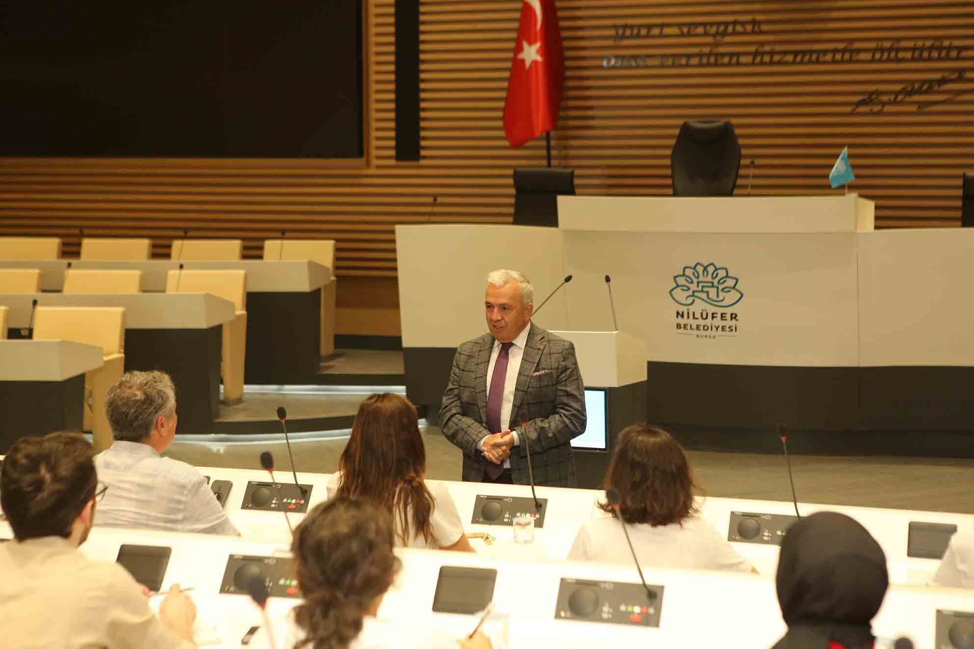 Bursa, İzmir ve Çanakkale’de düzenlenen eğitim seminerlerinin son durağı Nilüfer oldu. Nilüfer Belediyesi Barış Meclisi’nde gerçekleşen buluşmada, Başkan Şadi Özdemir halk sağlığı asistanlarıyla bir araya gelerek, belediyenin halk sağlığı ile ilgili çalışmaları hakkında bilgi verdi. Toplantıya Başkan Yardımcıları Okan Şahin, Serpil Altun ve Emre Karagöz’ün yanı sıra Bursa Uludağ Üniversitesi Tıp Fakültesi Halk Sağlığı Anabilim Dalı Başkanı Prof. Dr. Alparslan Türkkan ile Gaziantep Üniversitesi Halk Sağlığı Anabilim Dalı Öğretim Üyesi Doç. Dr. Elif Okşan Çalıkoğlu da katıldı.