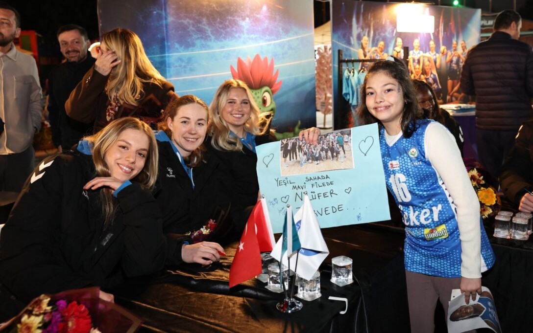 Konuşmaların ardından voleybolcular, kendileri için ayrılan alana geçerek taraftarların forma, atkı ve çeşitli ürünlerini imzaladı. Takım maskotu Zıpır’ın da renk kattığı etkinlikte sporcular, sevenleriyle bol bol fotoğraf çektirip sohbet etme imkânı buldu.
