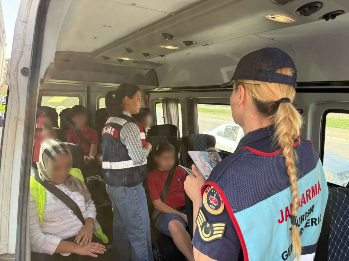 Yapılan denetimlerde okul servis araçları da kontrol edildi. Servis ile ulaşım sağlayan öğrencilerin güven içerisinde seyahat etmelerini sağlamak maksadıyla sürücüler ve öğrencilere temel trafik kuralları hakkında bilgilendirmeler yapıldı.