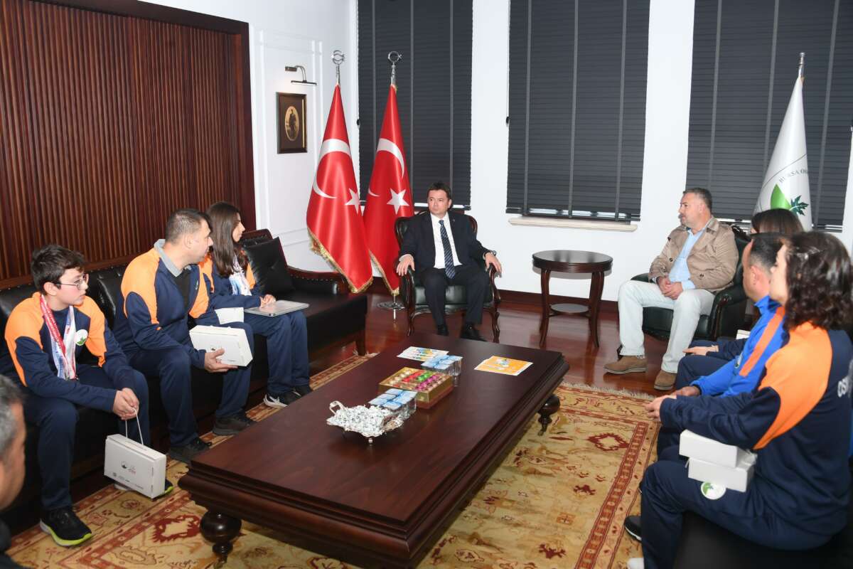 Katıldıkları her müsabakadan büyük başarılarla dönen Osmangazi Belediyespor sporcuları Bursa’ya yeni şampiyonluklarla döndü. Şampiyon sporcular kupa ve madalyalarıyla Osmangazi Belediye Başkanı Erkan Aydın’ı makamında ziyaret etti. Türkiye Atıcılık