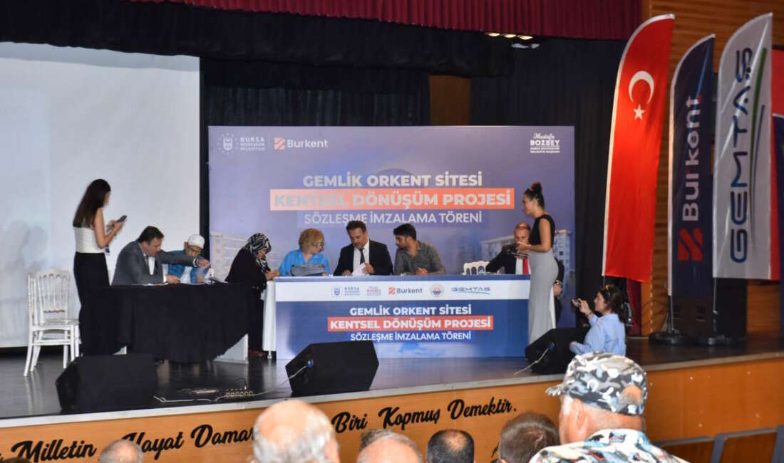 Birinci derece deprem kuşağında yer alan Bursa’yı olası depremin yıkıcı etkilerine karşı daha dirençli hale getirmek için projeler geliştiren Büyükşehir Belediyesi, Kuzey Anadolu Fay Hattı üzerinde bulunan Gemlik’te de kentsel dönüşüm çalışmalarını sürdürüyor. Bursa Büyükşehir Belediyesi ve Gemlik Belediyesi öncülüğünde BURKENT ve GEMTAŞ iş birliğiyle yürütülen ‘Orkent Sitesi Kentsel Dönüşüm Projesi’nde sözleşme heyecanı yaşandı. Gemlik Belediyesi Cemil Meriç Kültür Merkezi’nde düzenlenen törende, hak sahipleriyle noter huzurunda sözleşme imzalandı. 156 mâlik, 239 konut ve 8 ticari bağımsız birimden oluşan proje, insanı merkeze alan meydanlar, oyun alanları, sosyal donatılar, çevre dostu yaşam alanlarından oluşuyor. Vatandaş taleplerinin dikkate alındığı projeyle, ilçedeki yaşam kalitesinin artırılması ve güvenli konutlar inşa edilmesi amaçlanıyor.