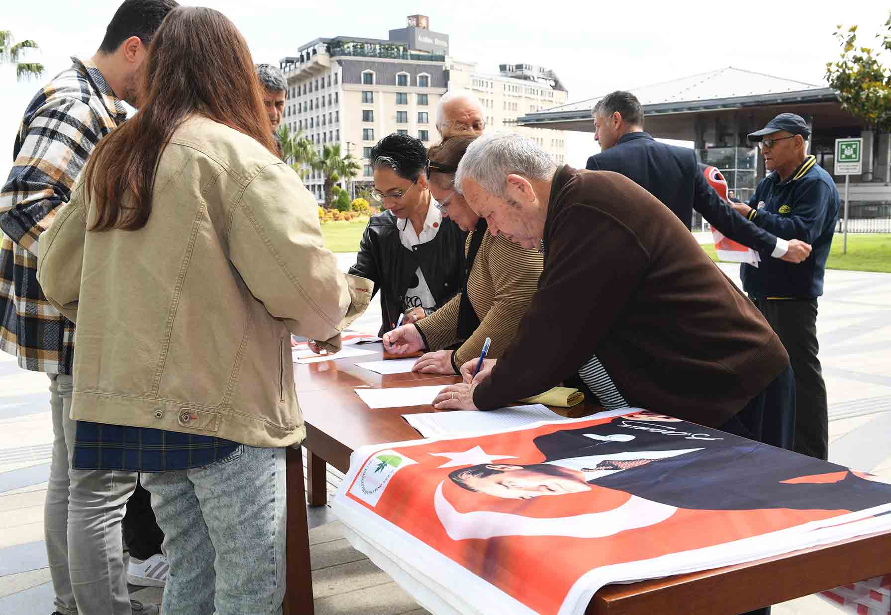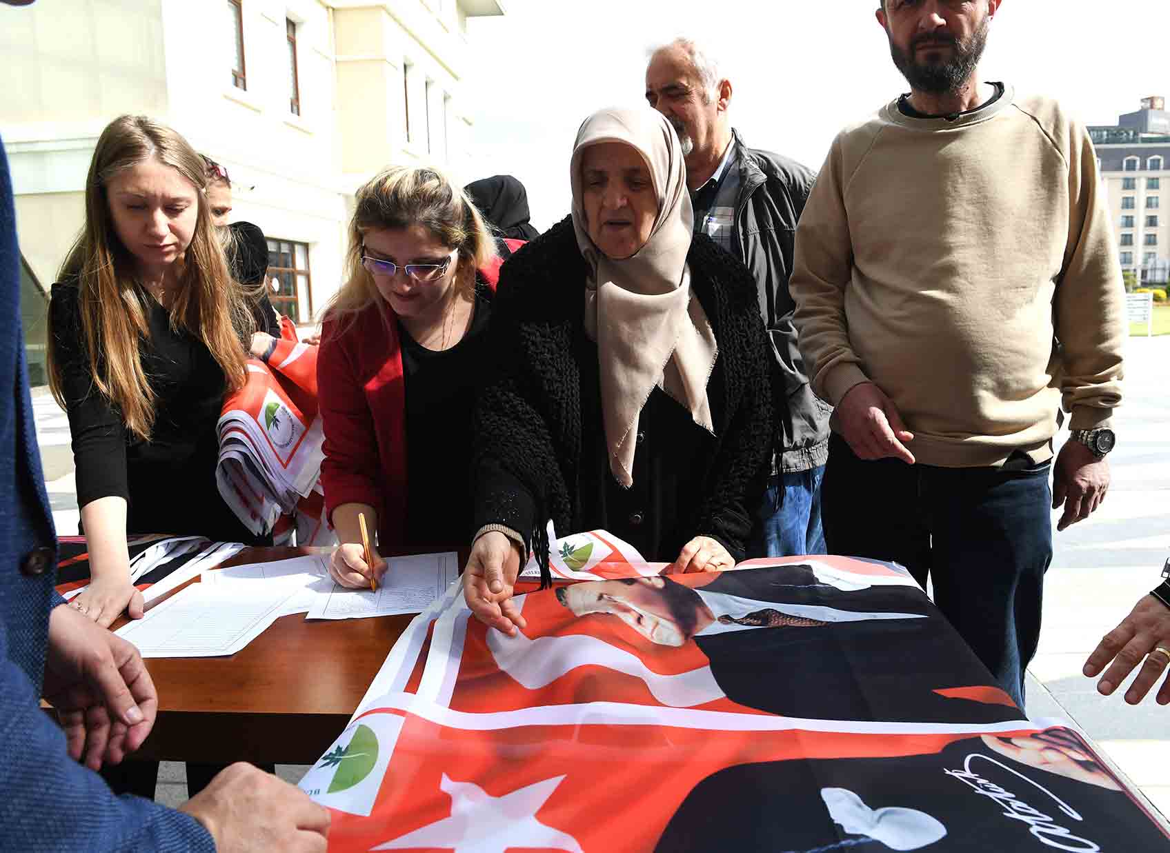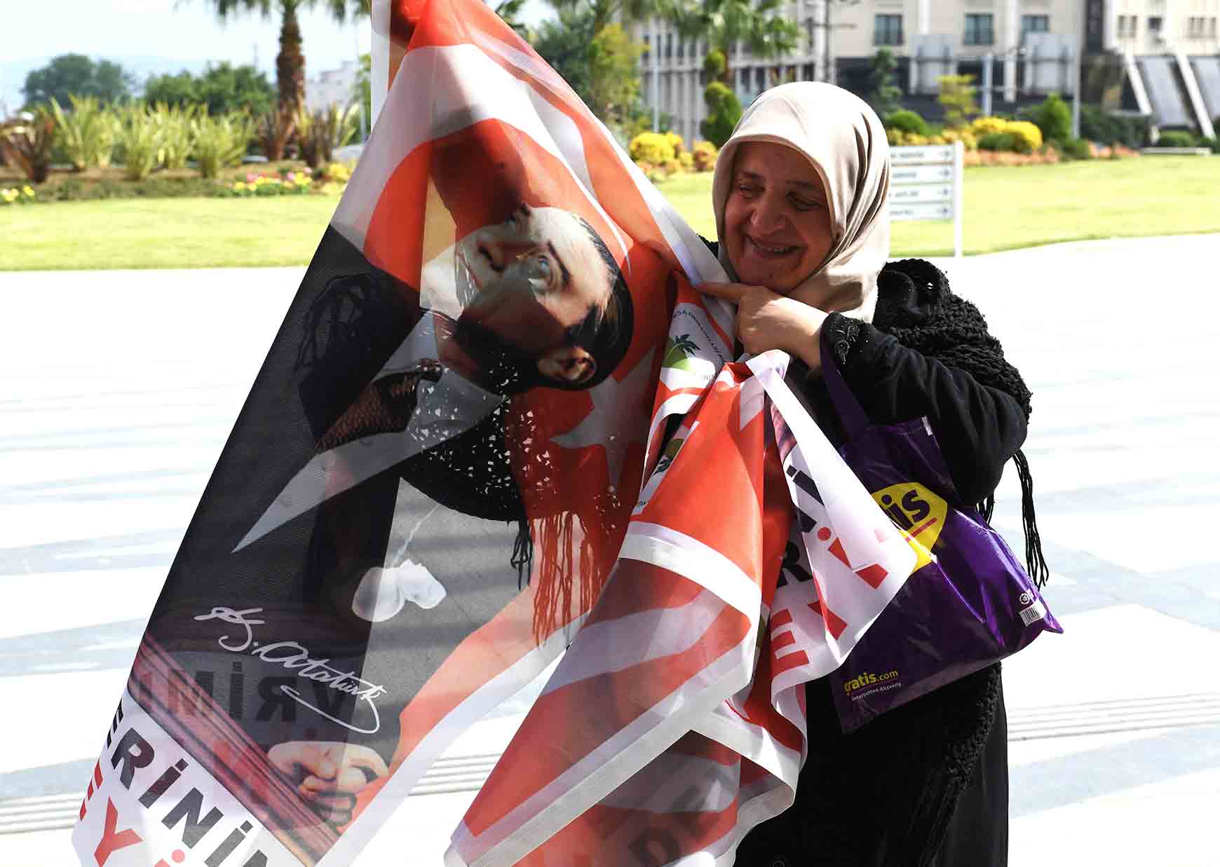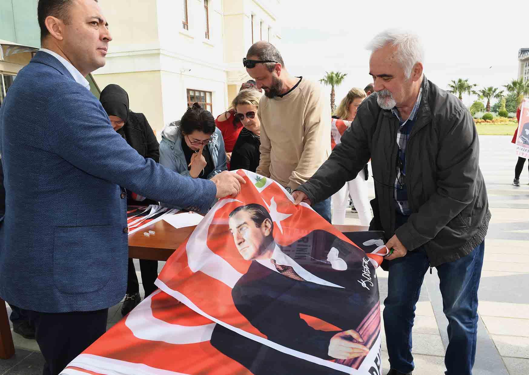 Dağıtılan bayraklardan alan vatandaşlar, Başkan Aydın’a teşekkür etti.