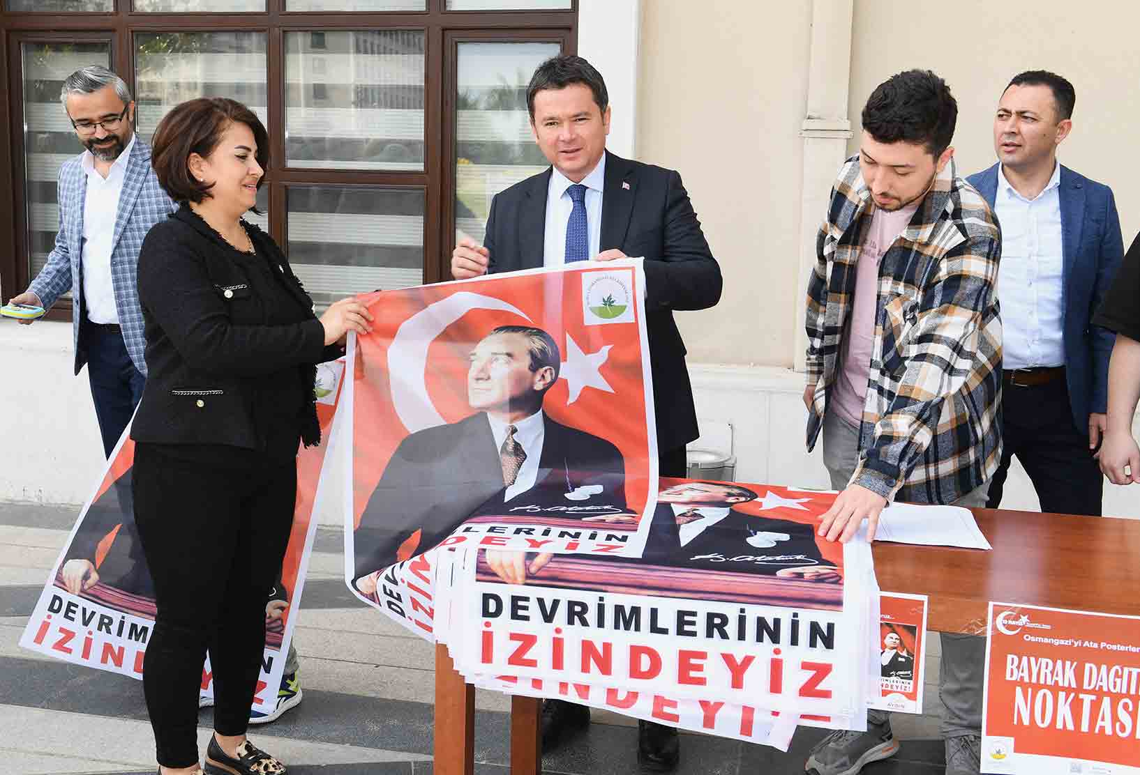 Osmangazi Belediye Başkanı Erkan Aydın da belediye binasına gelen vatandaşlara Ata posteri hediye etti. 19 Mayıs’ta Osmangazi’yi Atatürk ve Türk Bayraklarıyla donatacaklarını ifade eden Başkan Aydın, “19 Mayıs Atatürk’ü Anma ve Gençlik Bayramı’nda Osmangazi’yi Atatürk ve Türk bayraklarıyla donatarak bayramımızı kutlayacağız. Atatürk’ün gençliğe armağan ettiği ve kurtuluş mücadelesini başlattığı gün olan 19 Mayıs’ı Osmangazi ve Bursa’ya yakışır bir şekilde kutlayacağız. Haluk Levent, Emre Kaya ve Reckol konserinin yanı sıra sokak basketbolu ve masa tenisi etkinlikleriyle gençlerimize hediye edilen bu güzel bayramı coşku içinde kutlayacağız” dedi.