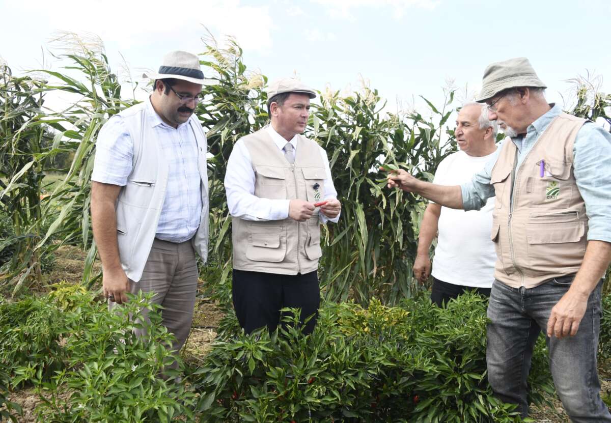 Osmangazi Belediye Başkanı Erkan Aydın, Gazi Tarım A.Ş’nin Hamidiye Tarım Mesleki ve Teknik Anadolu Lisesi’nin tarlasında yetiştirdiği organik ürünlerin hasadına katıldı. Hiç bir tarım ilacı kullanılmadan yetiştirilen sebze ve meyveler hem sağlıklı beslenmenin hem de yerli tohumun önemini bir kez daha gözler önüne serdi. Gazi Tarım A.Ş’nin Hamitler’deki serasında domates, biber, mısır, fasulye, kavun, karpuz ve kabak tohumlarından elde ettiği fideler Hamidiye Tarım Mesleki ve Teknik Anadolu Lisesi’nin tarlasına ekildi. Uygulama alanına ekilen fideler ürün vermeye başladı. Ata tohumlarından yetiştirilen meyve ve sebzeler tohum alınmak için toplanmaya başlandı. Organik ürünlerin hasadına katılan Osmangazi Belediye Başkanı Erkan Aydın, üretim süreciyle ilgili bilgiler alarak toplanan ürünleri inceledi.