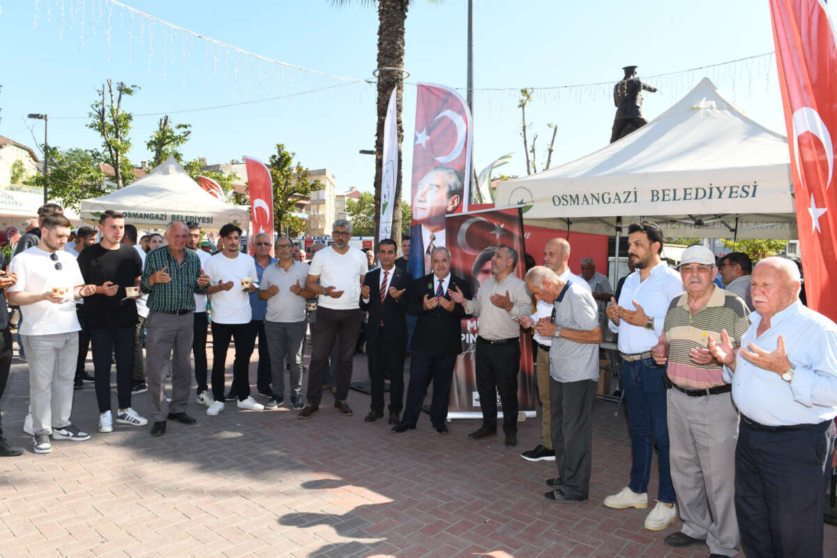 Aşure ikramı Demirtaş Mahallesi’nde de devam etti. Etkinlik, 2017 yılında şehit olan Jandarma Er Mümin Pınardağ için edilen dua ile başladı. Demirtaş Meydanı’ndaki programa Bursa Büyükşehir Belediye Başkan Vekili Sinan Nergiz, Osmangazi Belediye Başkan Yardımcısı Mücahit Yıldızhan, şehidin babası Adnan Pınardağ, belediye meclis üyeleri ve vatandaşlar katıldı.
