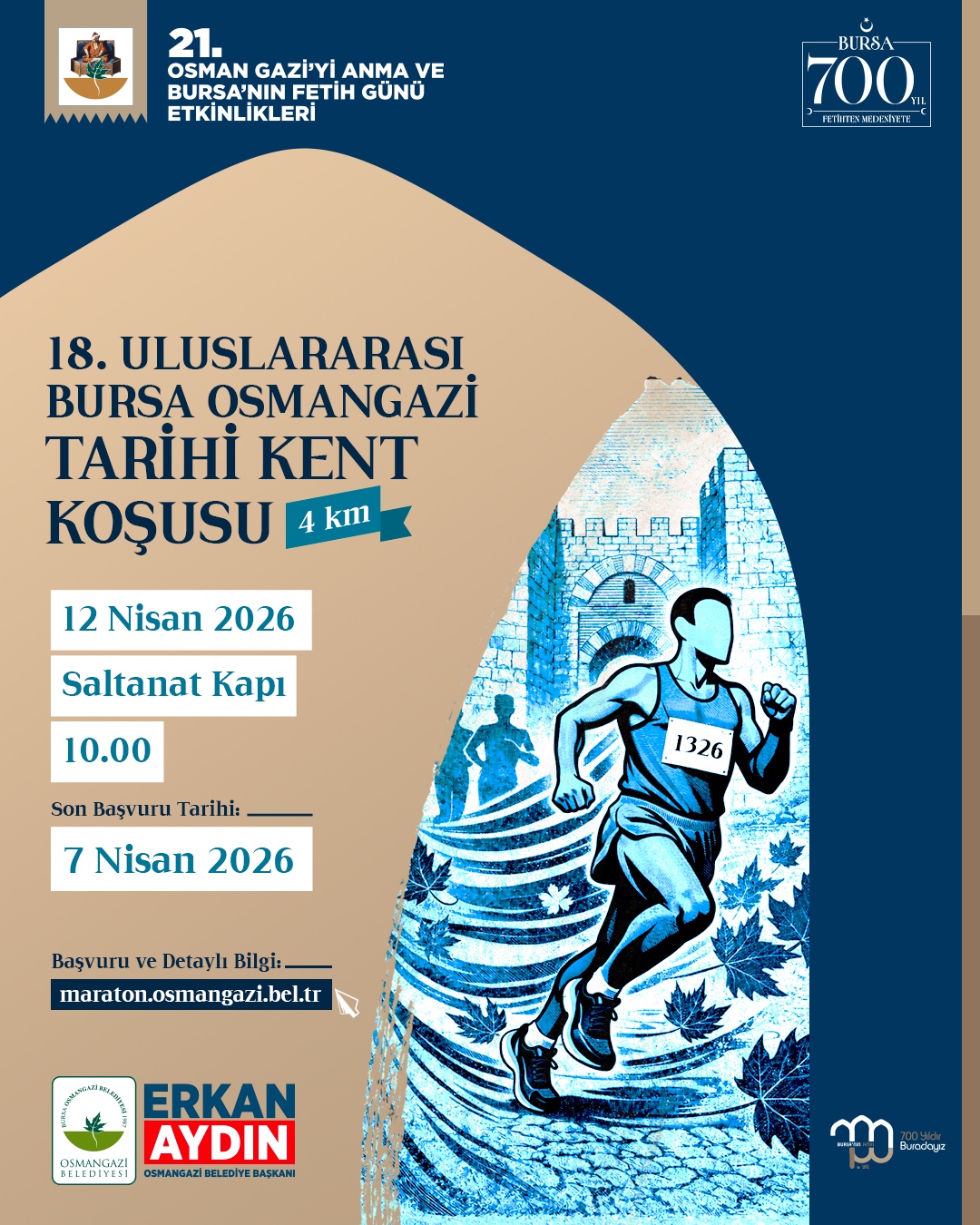 Bursa’nın köklü tarihine ve kültürel mirasına dikkat çeken etkinliklerden biri olan “18. Uluslararası Bursa Osmangazi Tarihi Kent Koşusu”, 12 Nisan 2026 Pazar günü Osmangazi Belediye Başkanı Erkan Aydın’ın katılımıyla gerçekleştirilecek. Osmangazi Belediyesi tarafından bu yıl 21’incisi düzenlenen “Osman Gazi’yi Anma ve Bursa’nın Fethi Etkinlikleri” kapsamında organize edilen koşu, kentin fethinin 700. yıl dönümüne denk gelmesi nedeniyle ayrı bir anlam ve önem taşıyor. Tarihi dokunun içinde gerçekleşecek olan koşu, Bursa’nın geçmişten günümüze uzanan mirasını sporla buluşturacak. Her yaştan katılımcıya açık olan etkinlik, hem profesyonel sporcuları hem de sporsever vatandaşları aynı parkurda bir araya getirecek.