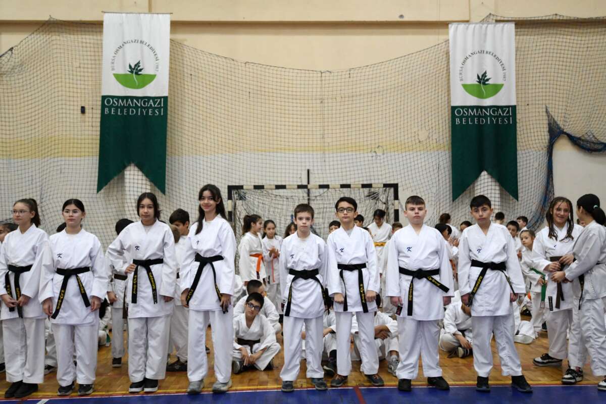 Dikkaldırım Kapalı Spor Salonu’nda düzenlenen karate eğitim semineri ve kuşak sınavına katılan sporcular, zorlu ve titiz bir değerlendirme sürecinden geçerek bir üst kemere terfi etmeyi başardı. Sınav sürecinde sporcuların teknik becerileri, disiplinleri ve karateye olan bağlılıkları detaylı bir şekilde değerlendirildi. Sınavı geçen sporcuların yeni kemerleri, Osmangazi Belediyespor Başkanı Fatih Karayılan tarafından düzenlenen törenle takıldı.