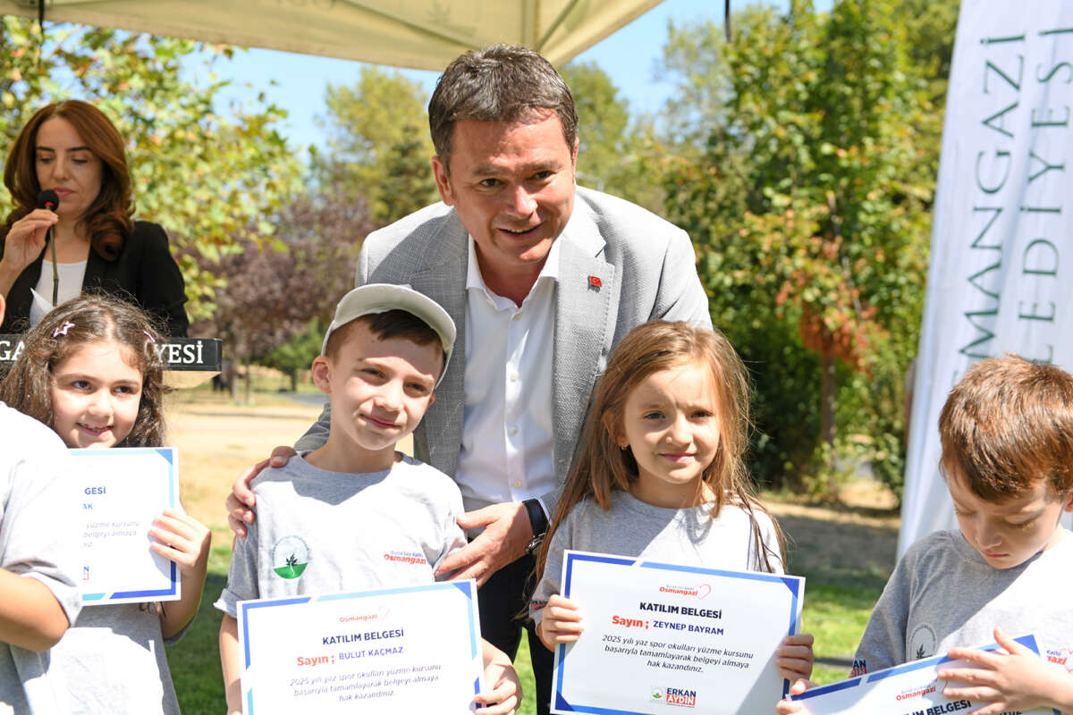 Başkan Aydın, “Sağlam kafa sağlam vücutta bulunur. Biz de bu anlayışla, hem geleceğimizin teminatı olan çocuklarımızı sağlıklı bireyler olarak yetiştirmek hem de ailelerin evlatlarıyla gurur duymasını sağlamak için bu kursları düzenliyoruz. Sadece yüzmede değil; basketbol, hentbol gibi farklı branşlarda da çocuklarımızın sporla buluşması için çalışmalarımızı sürdürüyoruz. Osmangazi’mize ve Bursa’mıza hizmet etmeye devam edeceğiz” ifadelerini kullandı.