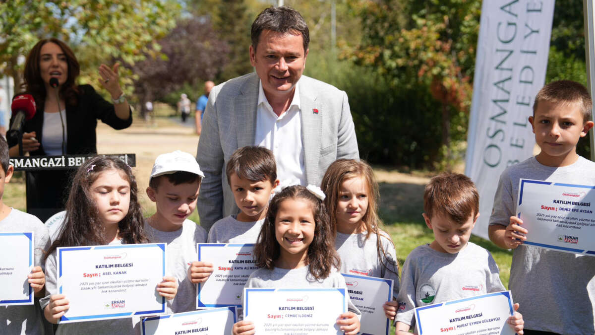 Çocukların yaz tatilini hem verimli hem de eğlenceli geçirmeleri için hazırlanan kursların sonunda Yeni Karaman Yarı Olimpik Yüzme Havuzu’nda sertifika töreni düzenlendi. Törene; Osmangazi Belediye Başkanı Erkan Aydın, belediye başkan yardımcıları, belediye meclis üyeleri ve Osmangazi Belediyespor Kulübü Yönetim Kurulu Başkanı Fatih Karayılan katıldı.