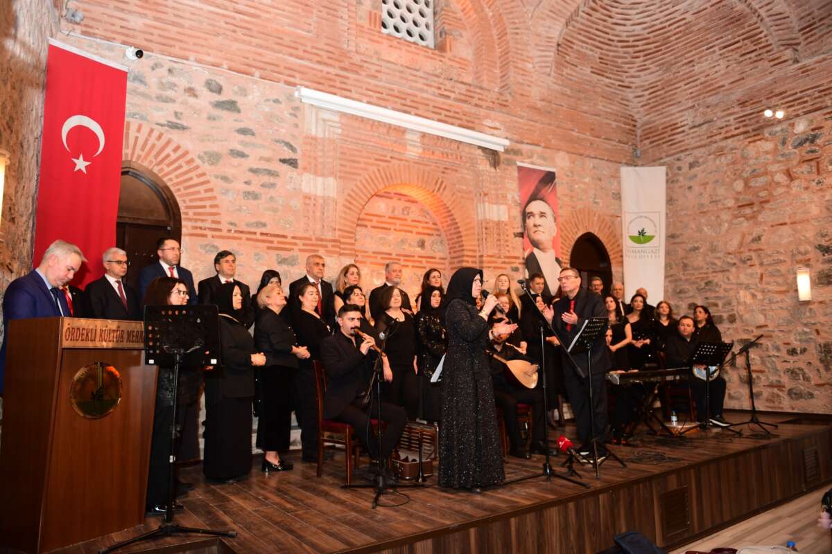 Gerçekleştirdiği çalışmalarla kültür ve sanatı kentin her kesimine ulaştırmayı amaçlayan Osmangazi Belediyesi, ‘Türkülerde Buluşalım’ konseriyle Bursalı sanatseverleri bir araya getirdi. Şef Fatih Şengöçmen yönetimindeki Osmangazi Belediyesi Türk Halk Müziği Korosu, titizlikle hazırlandığı programda Anadolu’nun sevilen ezgilerini başarıyla seslendirdi. Adeta türkü şölenine dönüşen konserde katılımcılar, dillere pelesenk olmuş eserlere hep bir ağızdan eşlik ederek gecenin coşkusunu doyasıya hissetti.