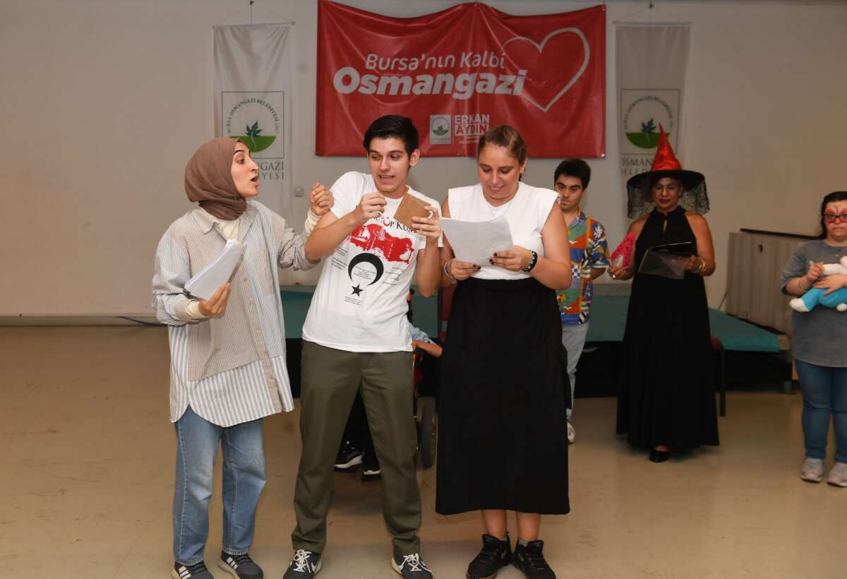Osmangazi Kent Konseyi Engelliler Meclisi’nin engelli bireylerine çeşitli eğitimler verdiklerini ifade eden Osmangazi Kent Konseyi Engelliler Meclisi Öğretmeni Huriye Ece Küçük, “Verdiğimiz eğitimlerde engelli bireylerin kendi potansiyelinin farkına varmasını hedefliyoruz. Biz burada 3 Aralık Dünya Engelliler Günü’ne hazırlanıyoruz. Bu özel günü hazırladığımız tiyatro oyunuyla büyük bir coşkuyla kutlayacağız. Oyunumuzla topluma güzel mesajlar vereceğiz. Provalarımız devam ediyor. Engelli bireyler 6 aylık bir çalışmanın sonunda herkesin çok beğeneceği oyunu 3 Aralık Dünya Engelliler Günü’nde sahneleyecek. Oyunumuzun ismini sır gibi saklıyoruz. Biz bu defa kendi içimizde farkındalık olayını çözelim herkese kapılarımızı açalım dedik ve engelli bireylerle burada olmak isteyen bütün bireylere kapılarımızı açtık. Engelli ve engelsiz ayırt etmeden oyumuzda herkese yer verdik” dedi.