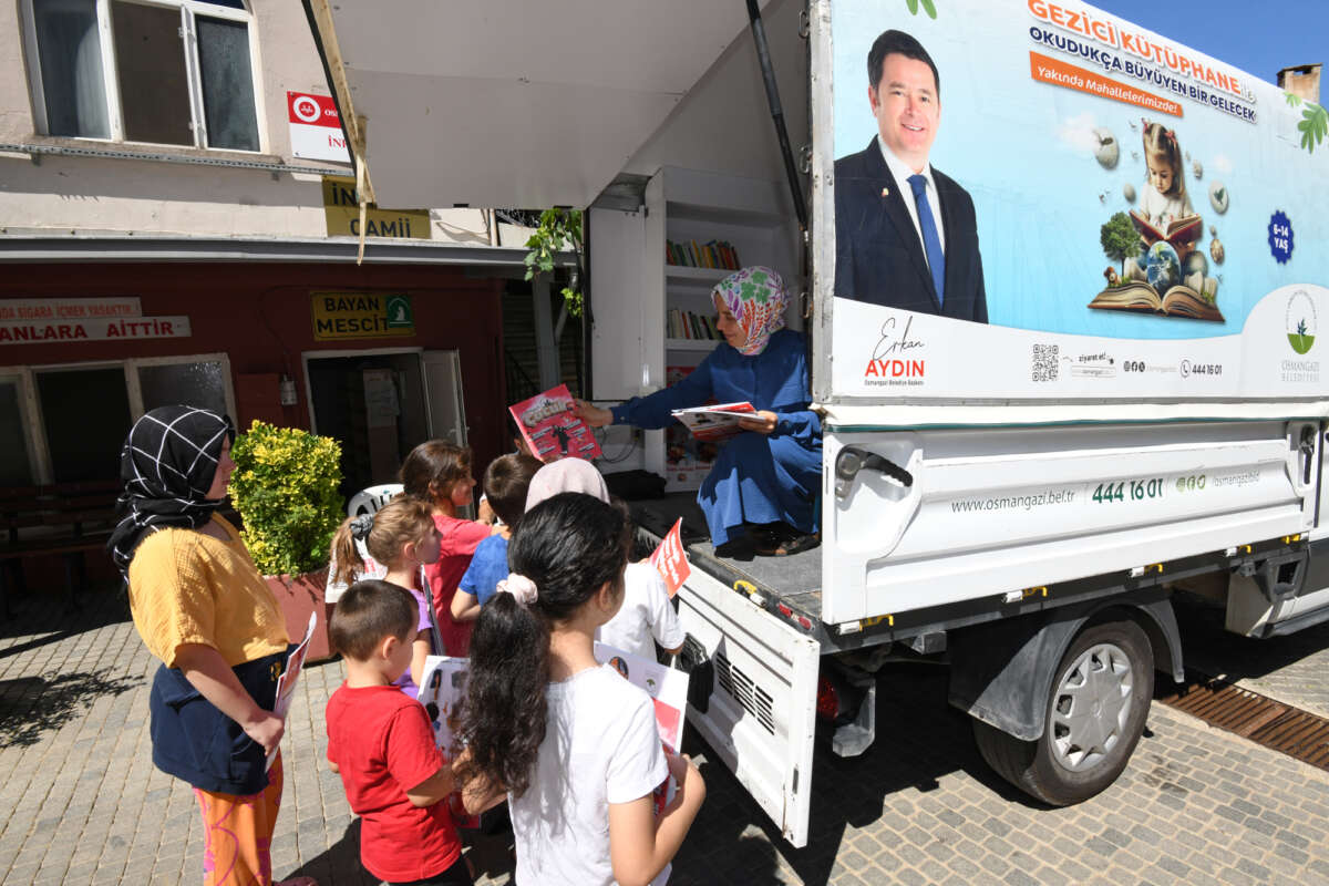 Gezici Kütüphane hizmetinden dolayı oldukça mutlu olan çocuklar, Osmangazi Belediyesi’nin bu anlamlı projesinden dolayı Osmangazi Belediye Başkanı Erkan Aydın’a teşekkür etti.