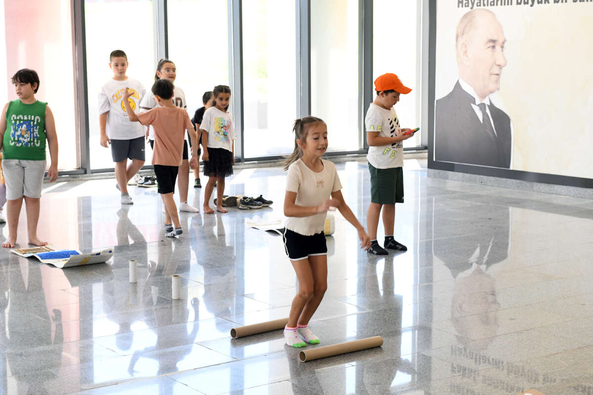 Etkinliği yöneten Yaratıcı Drama ve Özel Eğitim Öğretmeni Gülşah Günay, çalışmanın amacının çocuklara hem doğa bilinci hem de iş birliği kültürü kazandırmak olduğunu belirterek, “Yaşar Kemal’in Teneke isimli eserinden yola çıkarak bir toprak atölyesi gerçekleştirdik. Eserde sivrisineklerle mücadele eden, çeltik tarlaları olan bir köyün dönüşümünü ve adalet duygusunu işliyoruz. Drama canlandırmaları yaptık, ritim aletleri ürettik, çocuk yogası ile denge çalıştık, resim yaptık. Çoraptan sivrisinek yapma etkinliğimizde ise kitaptaki köyde yaşanan sivrisinek sorununa gönderme yaptık. Parkur etkinliği ile özgüvenlerini artırmayı ve takım çalışmasını güçlendirmeyi hedefledik. Tüm malzemeler geri dönüştürülebilir materyallerden seçildi” dedi.