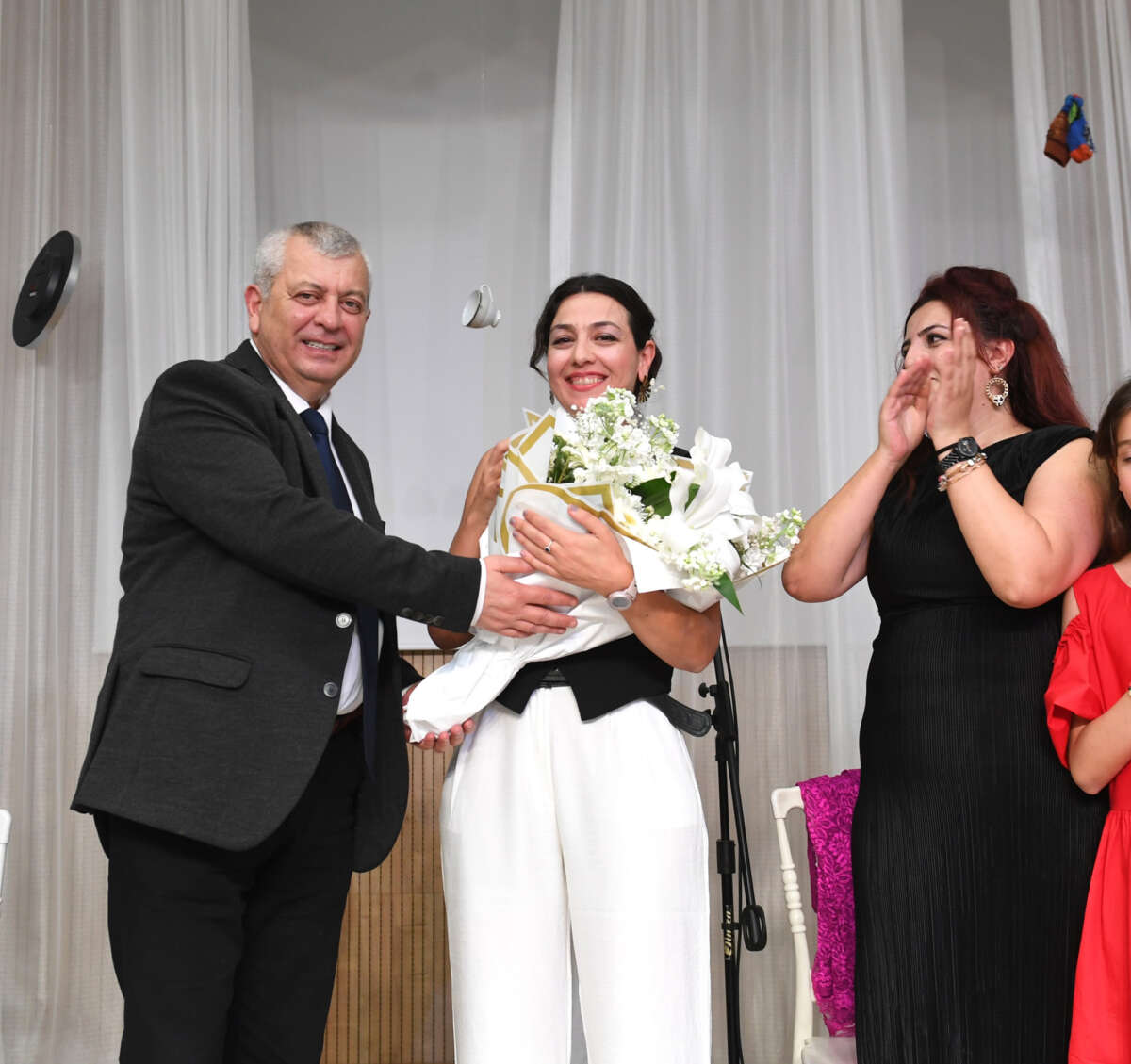 İzleyiciler arasında yer alan Osmangazi Belediye Başkan Yardımcısı Mutlu Esendemir, yaptığı konuşmada, “‘Kadınlar Tiyatro Sahnesinde’, bizim için sadece bir tiyatro projesi değil; en önem verdiğimiz projelerimizden bir tanesi. Hiç tiyatro eğitimi almayan kadınların, sahneye çıkarak kendi sorunlarını ortaya koyması çok önemli. Bu projemiz devam edecek. Oyunu başarıyla ortaya koyan tüm oyuncuları tek tek tebrik ediyorum” dedi. Osmangazi Belediye Başkan Yardımcısı Mutlu Esendemir, oyun sonunda tüm oyuncular adına yönetmen Gözde Akın’a çiçek takdim etti.